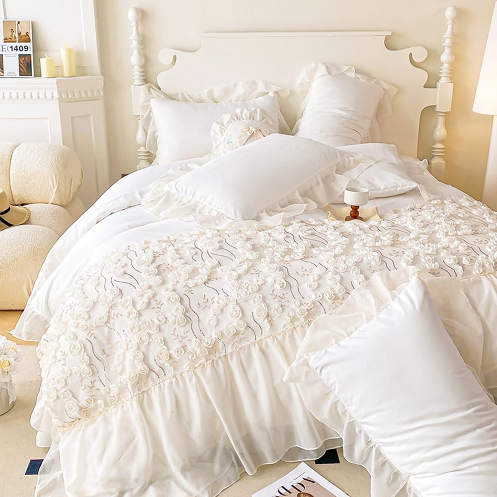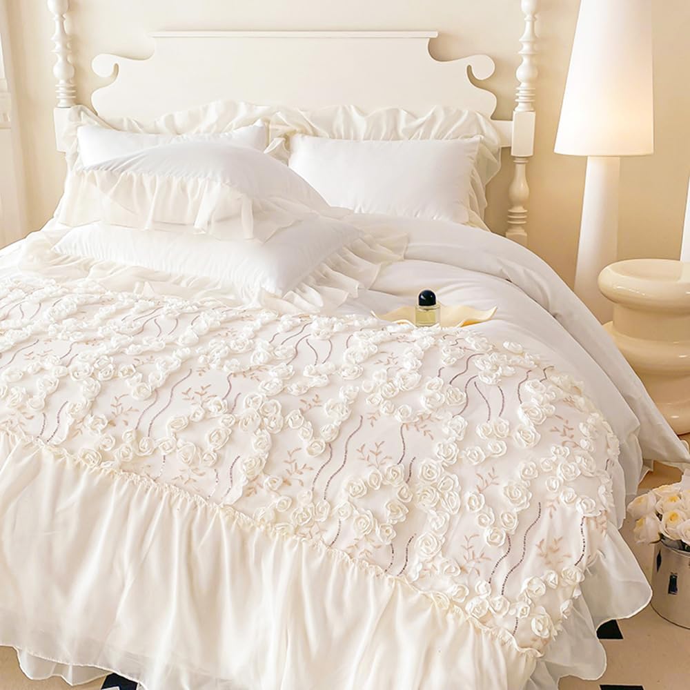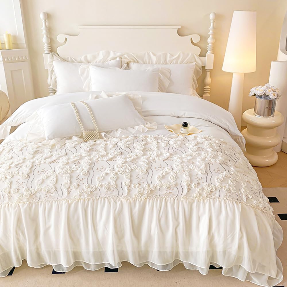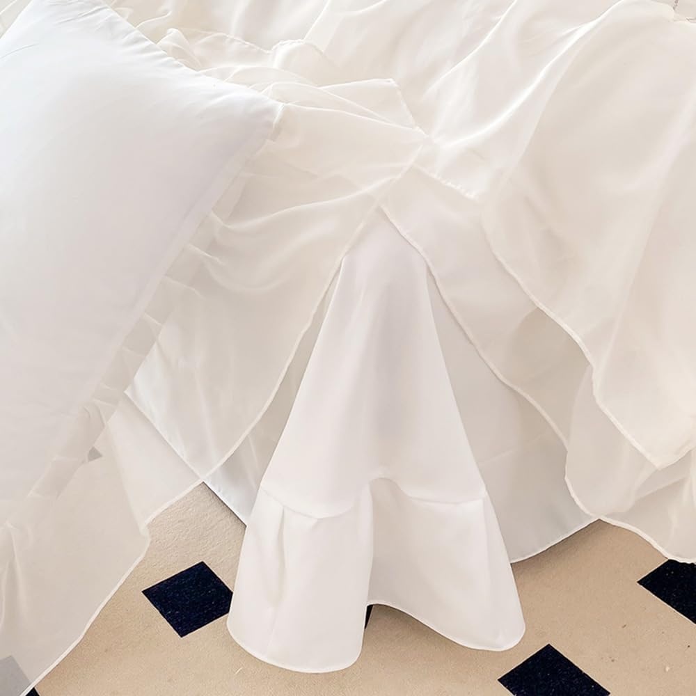 Whether you're looking to create a serene sleeping space or add a refined touch to your bedroom decor, this set is the ideal solution. The ruffle detailing adds a soft, sophisticated flair that blends beautifully with minimalist, farmhouse, or vintage room styles.