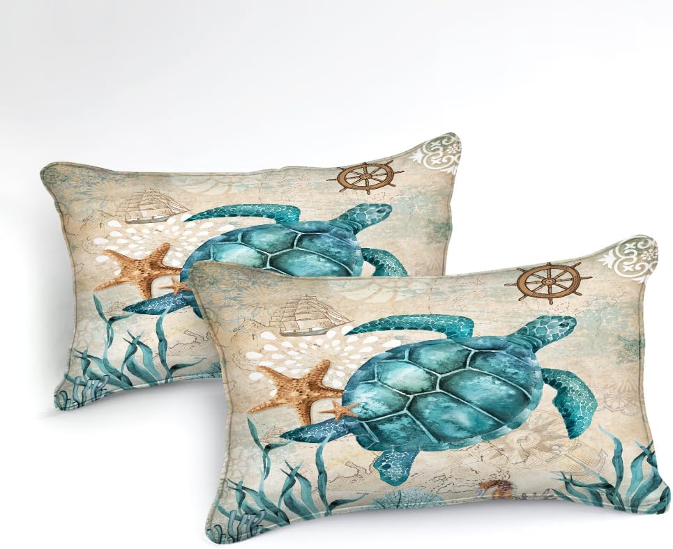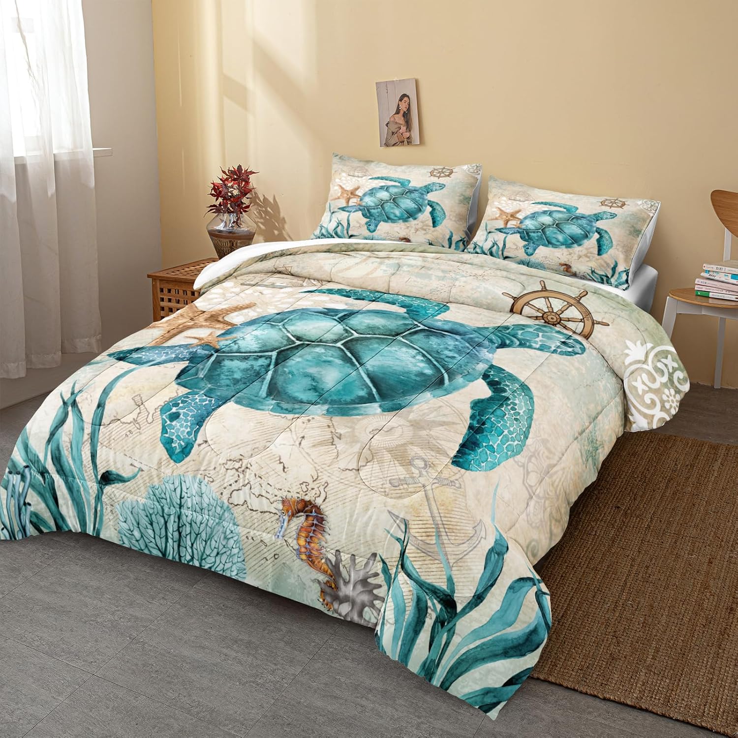 This Merryword Turtle Comforter Set is the perfect blend of comfort and style for a child's bedroom. With its vibrant teal turtle design, it brings a playful, ocean-themed charm that transforms any space into a cozy and inviting retreat. The premium 200gsm microfiber comforter and matching pillow cases offer an unmatched level of softness and warmth, making it ideal for use throughout the year, whether it's summer or winter.