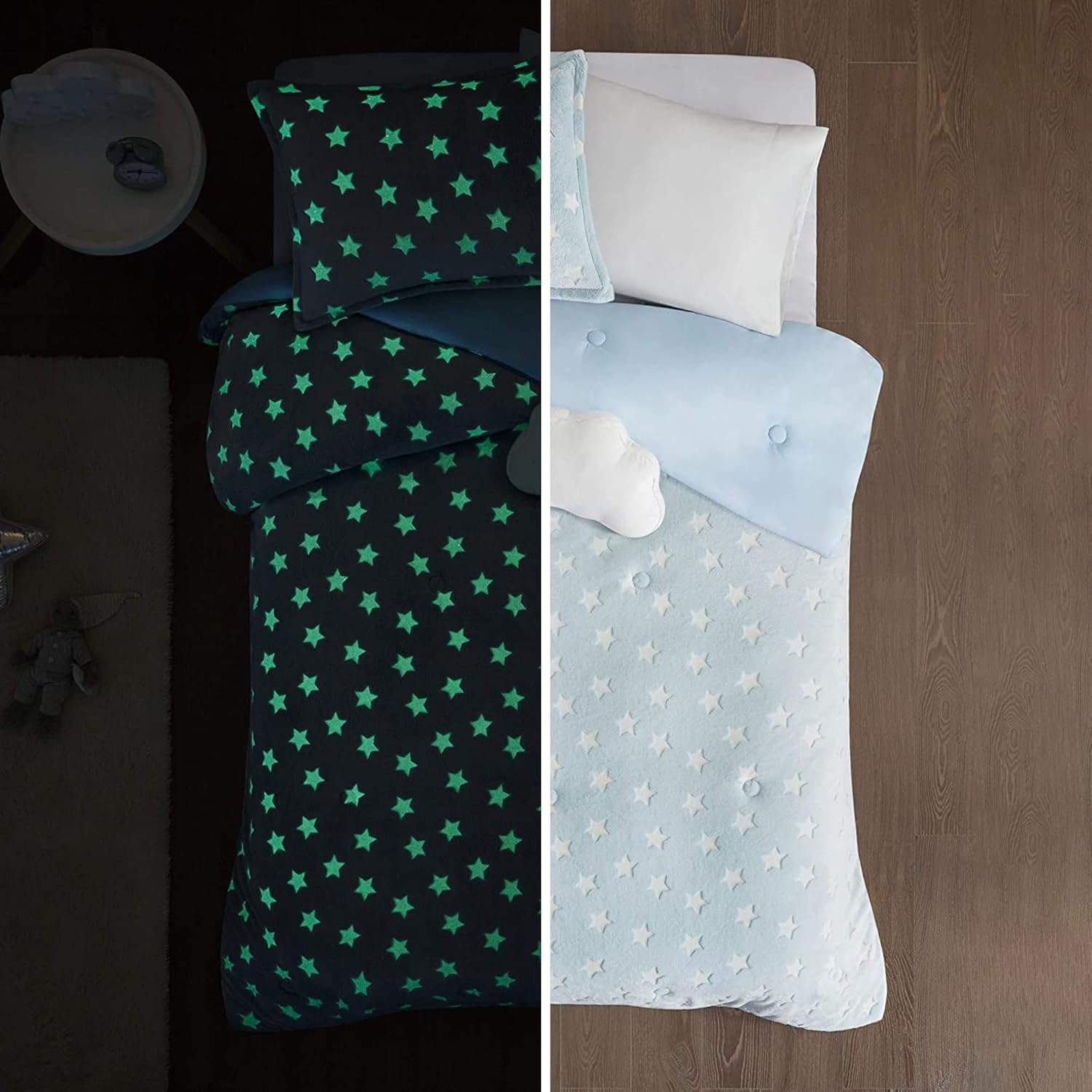 Keywords: glow in the dark comforter set, kids bedding set, plush comforter set, bedroom decor for kids, night time lighting for kids
