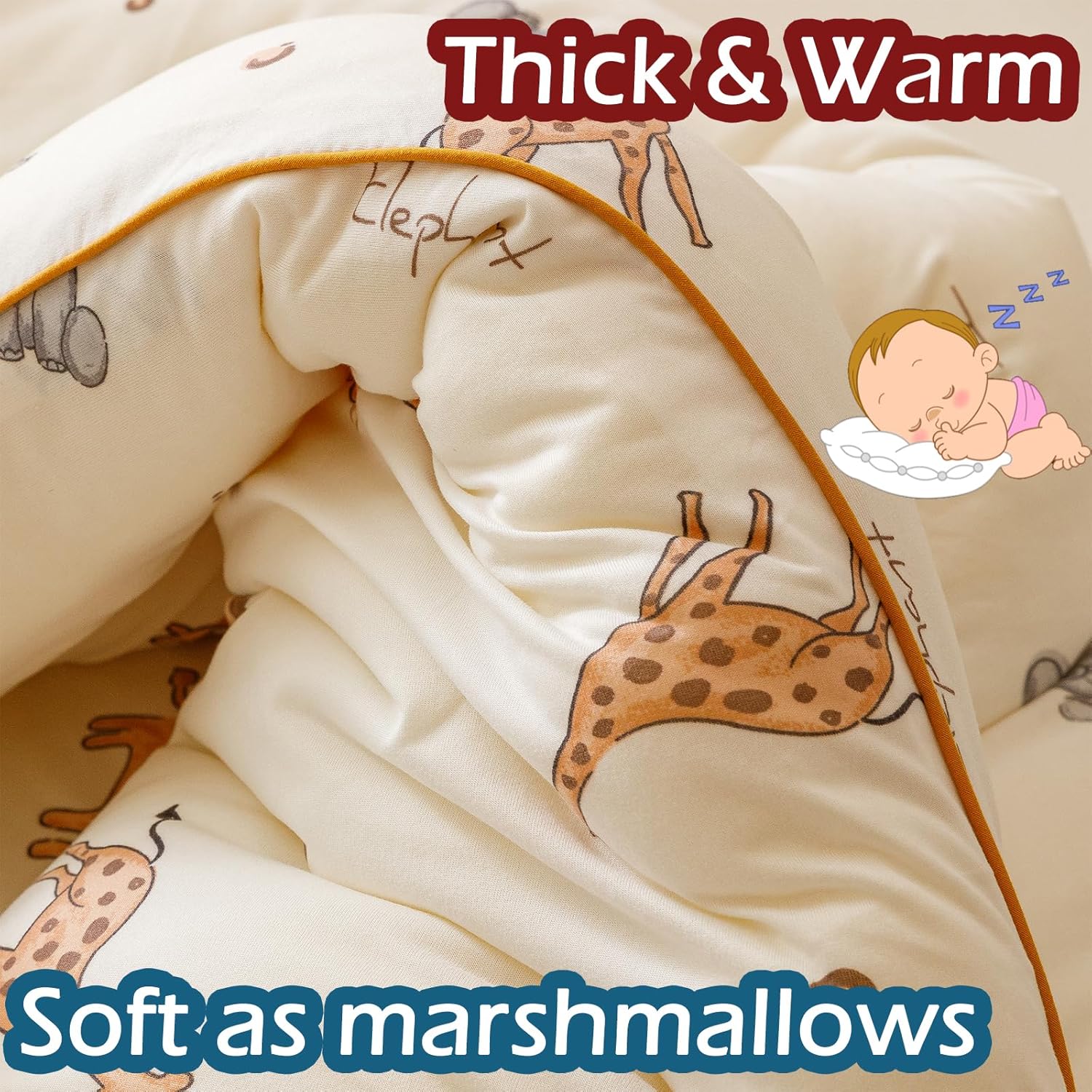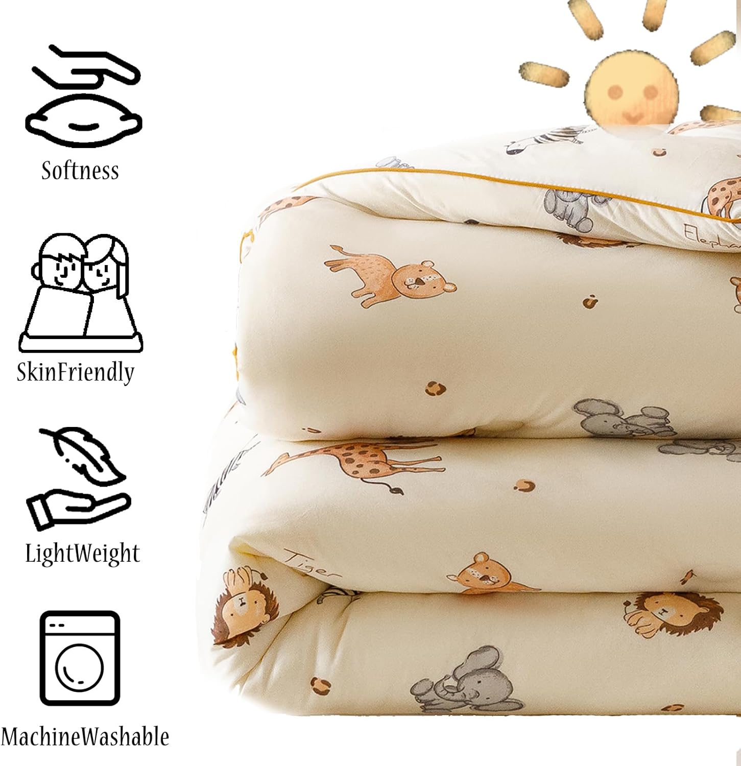 This kids comforter set is a dream come true, designed to bring warmth and comfort to your little oneâs room. Made with ultra-soft microfiber jersey fabric, it feels like a cloud of softness, enveloping your child in a gentle and cozy embrace. The 2-inch thick, fluffy comforter is perfect for fall and winter nights, providing just the right amount of warmth without making them feel stuffy. Adorable animal designs add a touch of whimsy, transforming their bedroom into a magical space where sleep feels like a luxury. Whether they're reading a bedtime story or watching their favorite movie, this comforter is the ultimate addition for a restful nightâs sleep.