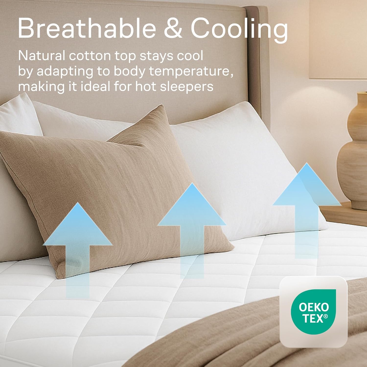 You'll love how this twin mattress pad fits like a glove, creating a secure seal that blocks dust and allergens, keeping your mattress clean and hygienic over time. The durable construction ensures it lasts through hundreds of washes, helping to preserve your mattress's condition and extend its life. Designed for all-season use, it maintains a consistently comfortable sleep environment without sacrificing support or protection. A perfect choice for any bedroom, it brings both style and function to your bedding setup.