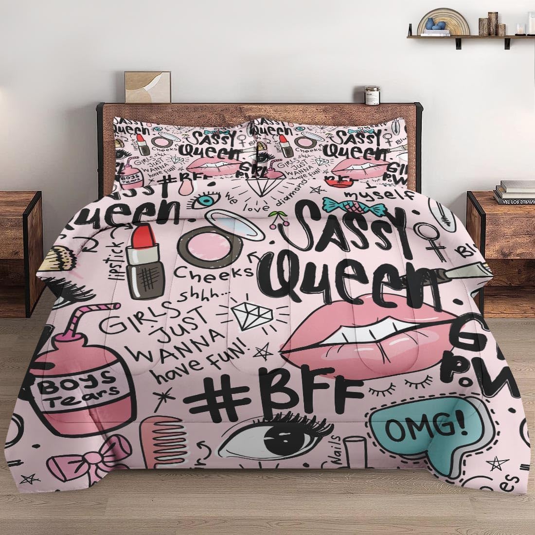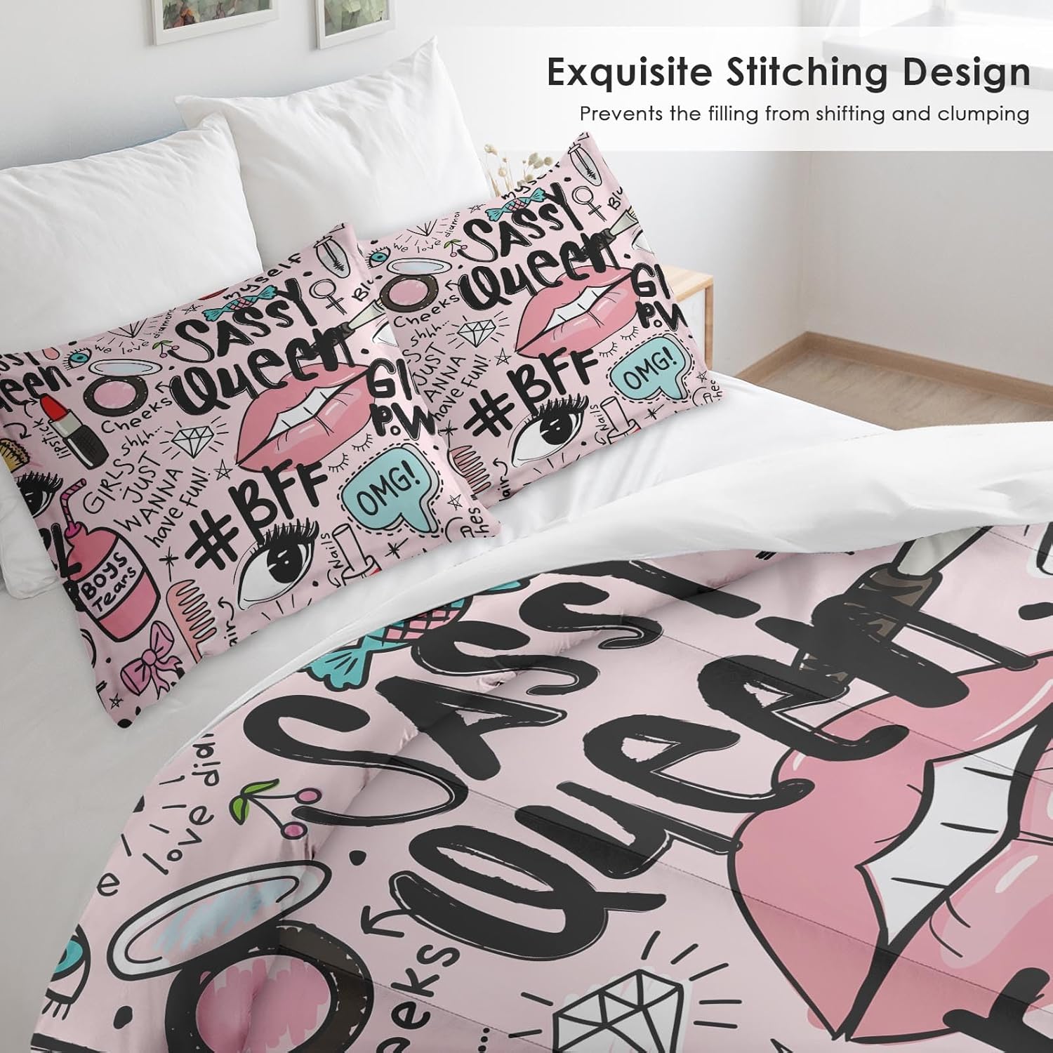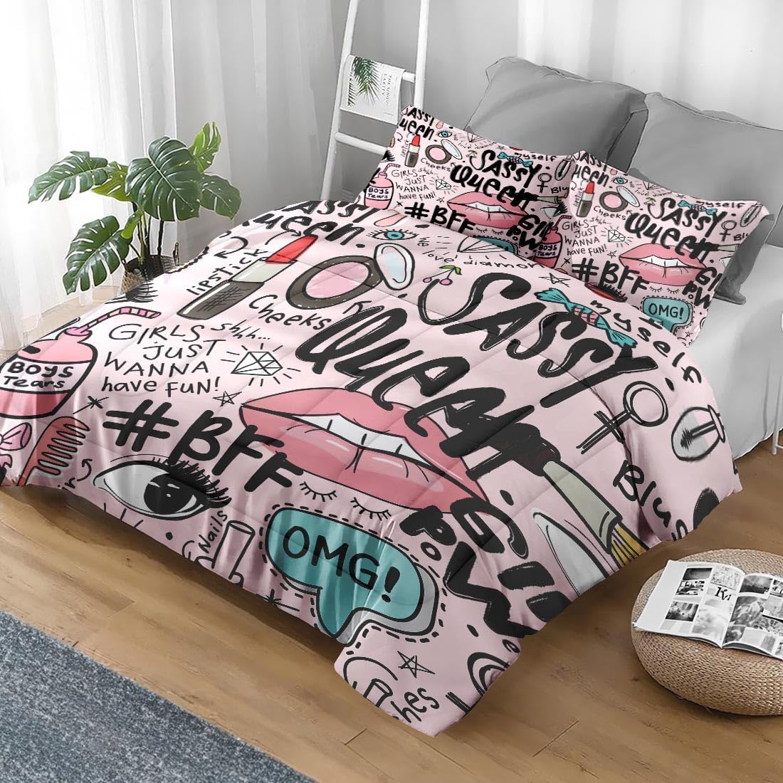 Elevate your bedroom with this premium 3-piece comforter set, designed for both comfort and style. Crafted with finely brushed microfiber, it delivers a luxuriously soft and lightweight feel, perfect for a peaceful night's sleep. The moisture-wicking properties keep you cool and refreshed, while the elegant makeup pink color and diamond-cut design add a fashionable and modern touch to any room.