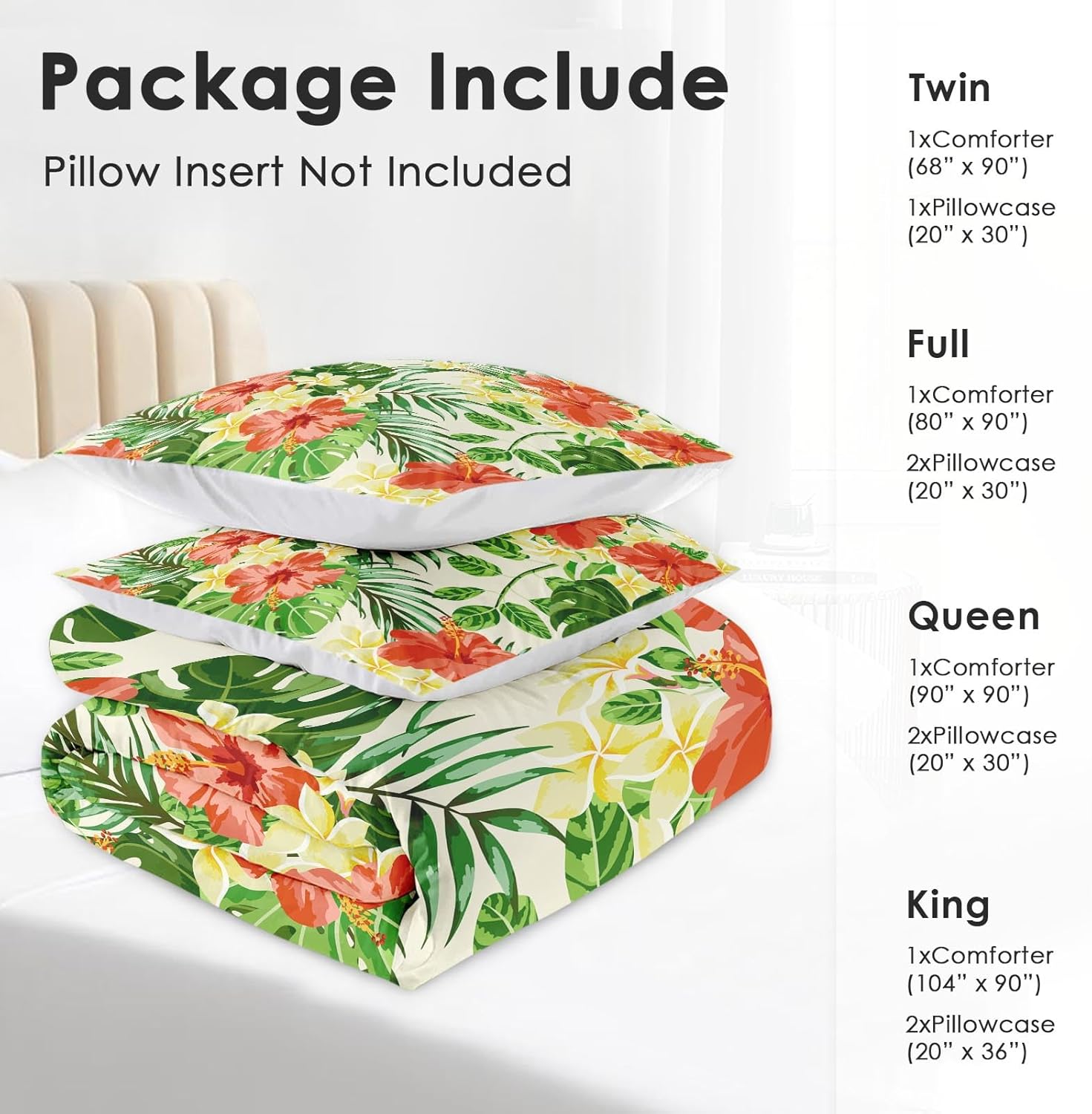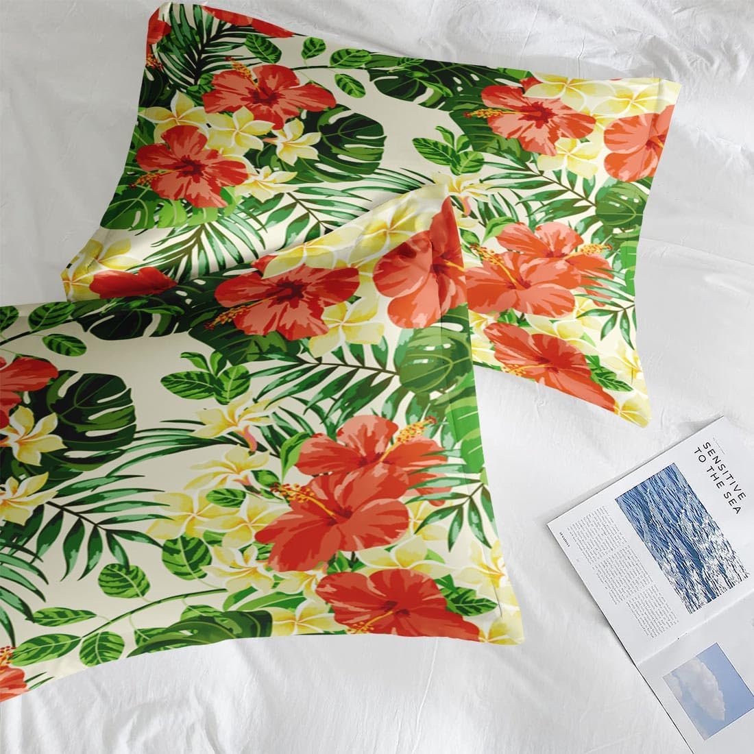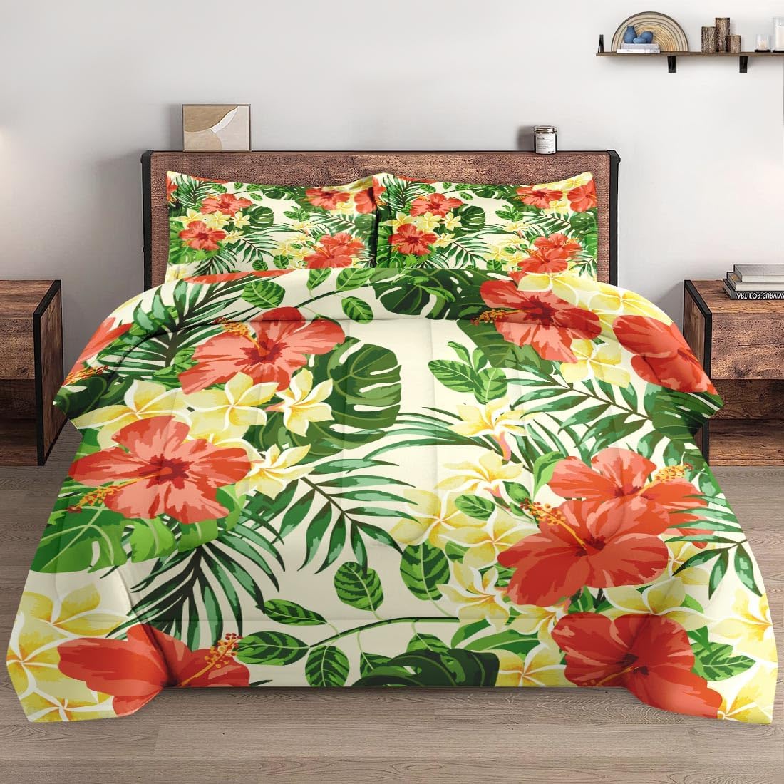 This comforter set is designed with a striking hibiscus monstera palm leaf pattern, adding a tropical and artistic flair to your bedroom decor. The elegant design and seamless stitching not only enhance the visual appeal but also contribute to the product's durability, keeping the filling secure for long-lasting use.