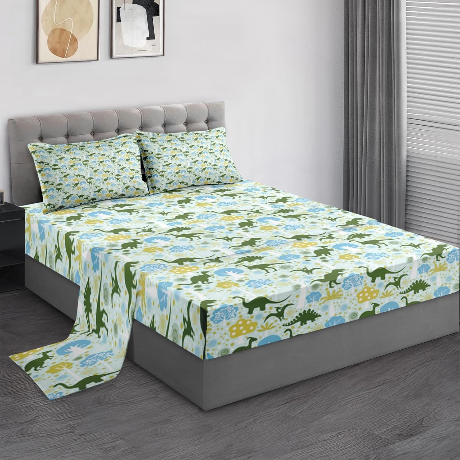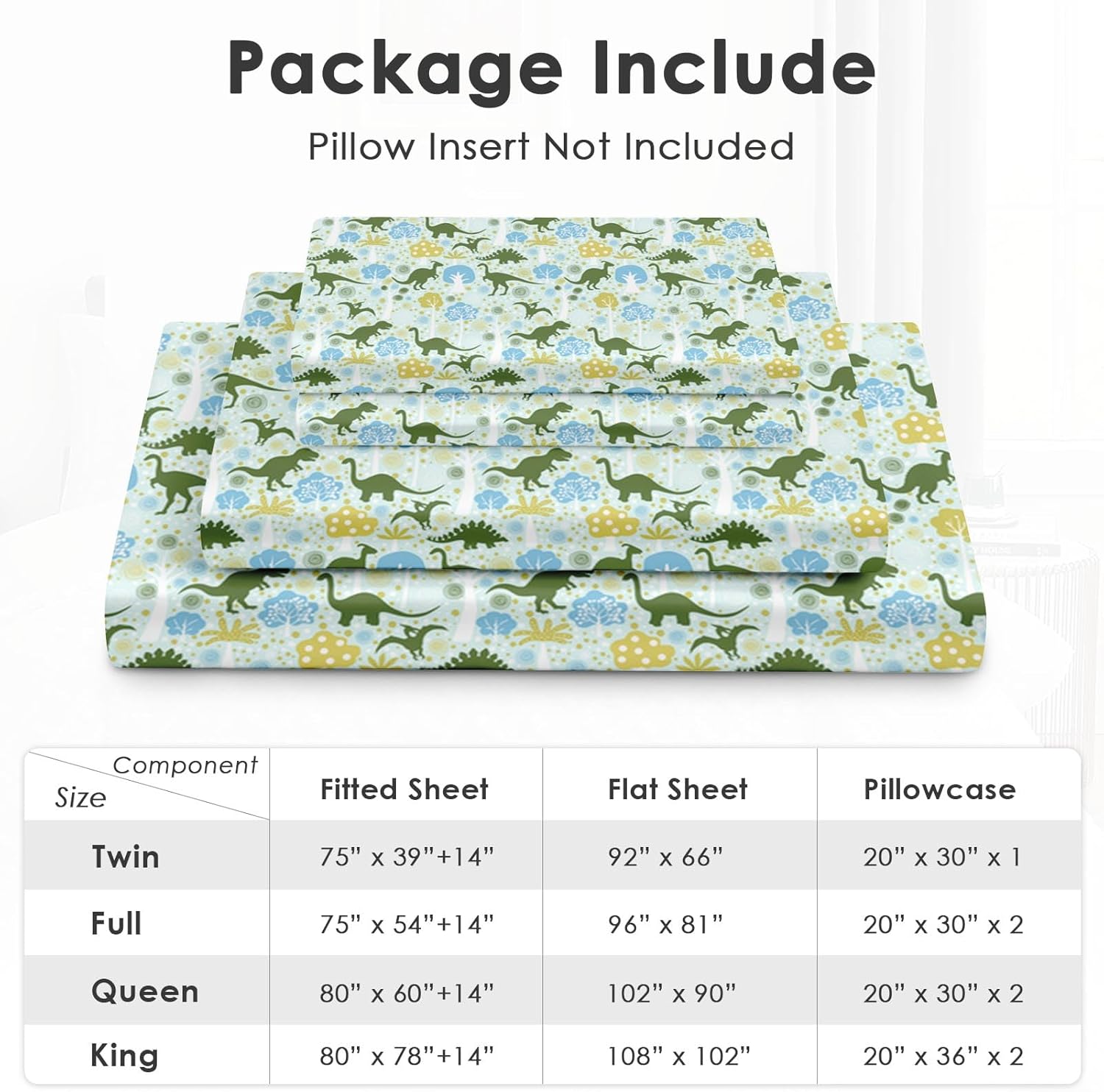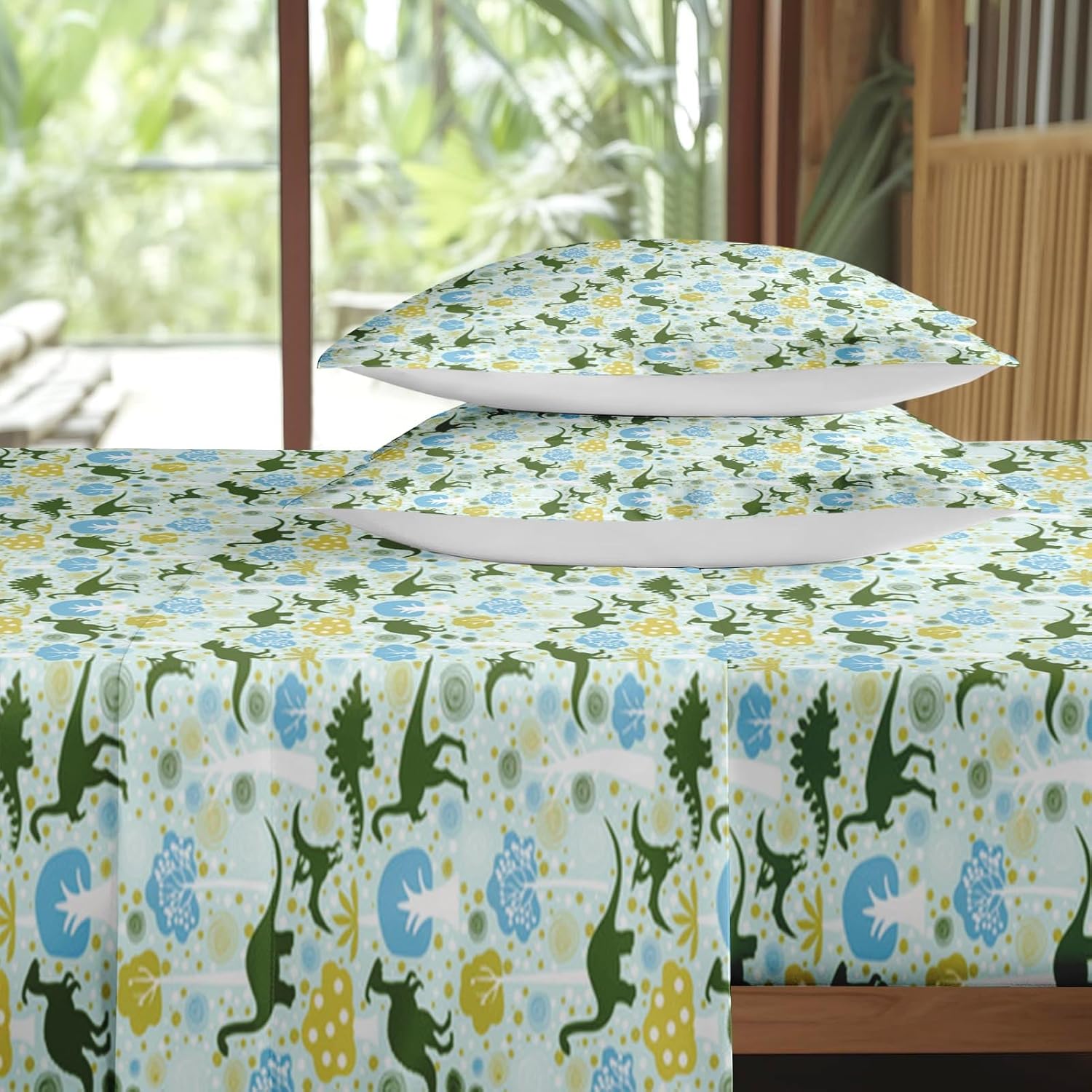 Add a touch of fun and comfort to your bedroom with this charming green dinosaur print twin size sheet set. Designed with premium brushed microfiber fabric, it offers a soft and gentle touch that ensures a luxurious sleeping experience for all ages.