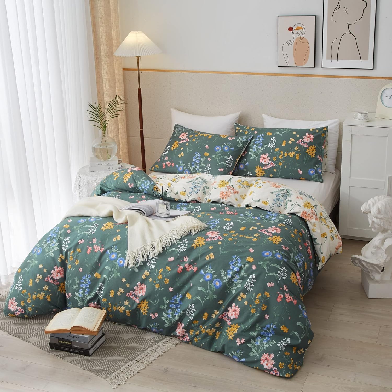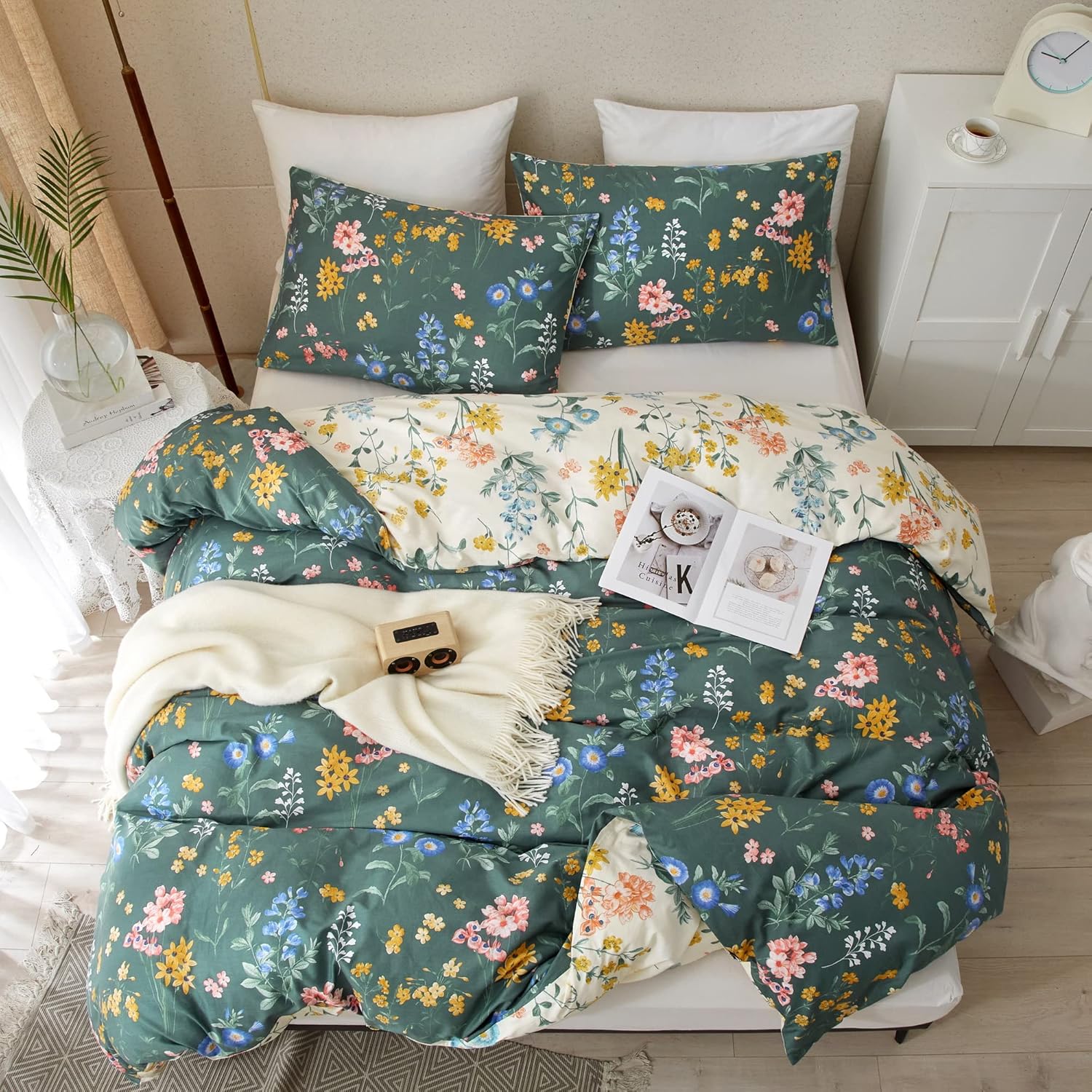 Elevate your bedroom with this elegant queen-sized duvet cover set featuring a vintage garden floral design. Made from 100% premium cotton, it delivers softness, breathability, and durability for a comfortable night's sleep. The hidden zipper ensures easy access for cleaning, while the 4 corner reinforced seams provide a secure and long-lasting fit. This duvet cover is perfect for every season and adds a touch of timeless charm to your space.
