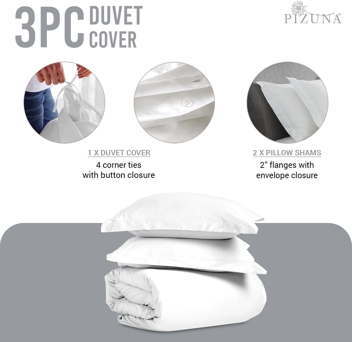 Enjoy the perfect blend of softness, breathability, and durability that makes this Pizuna Pure King Duvet Cover Set a must-have for every season. Sleek and refined, itâs designed to offer restful nights and a lasting impression youâll love.