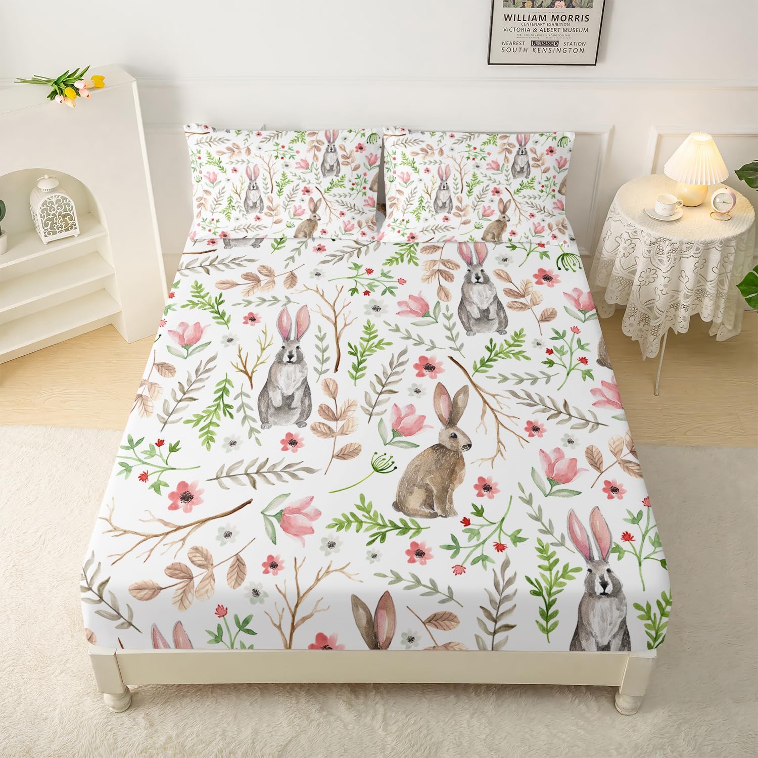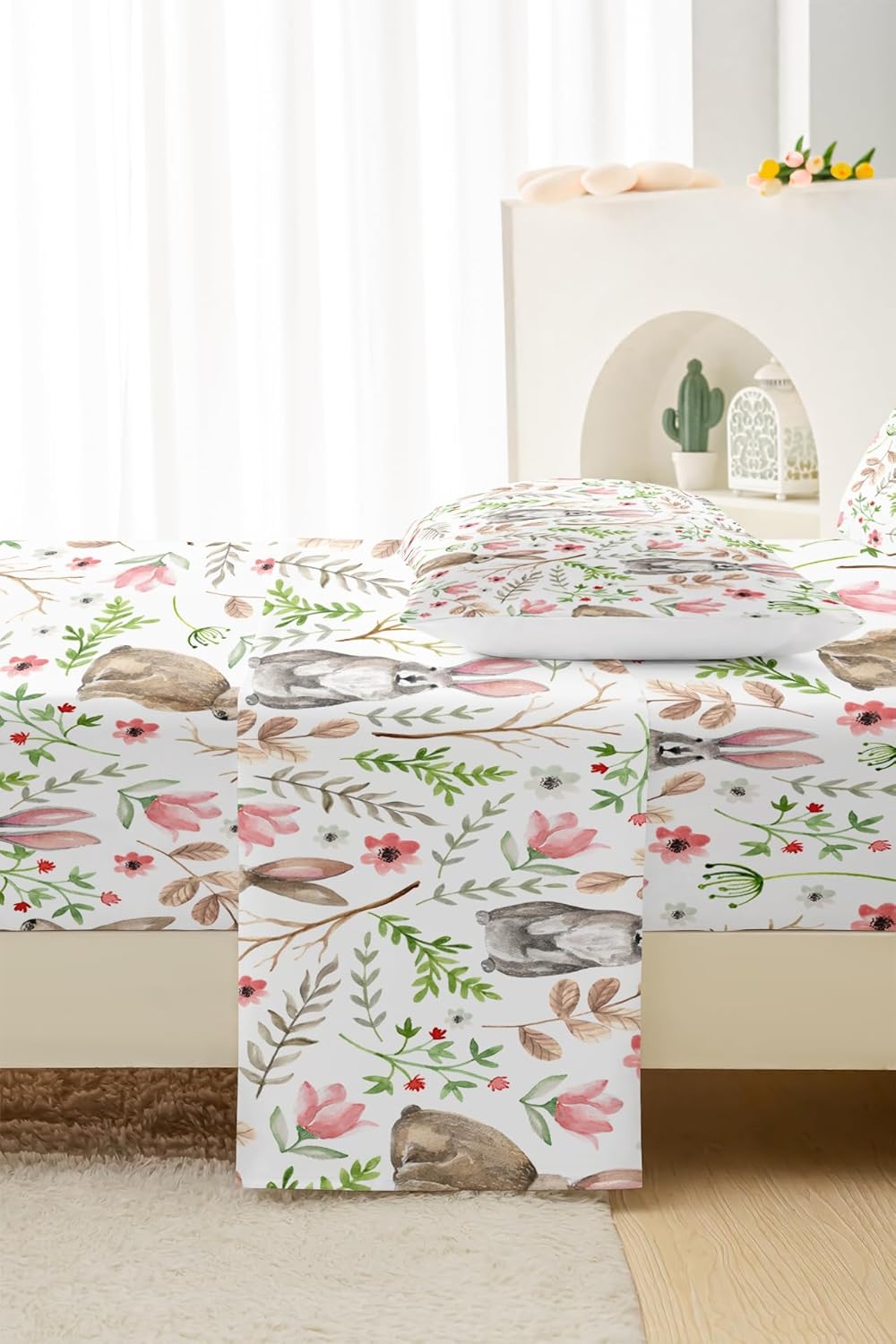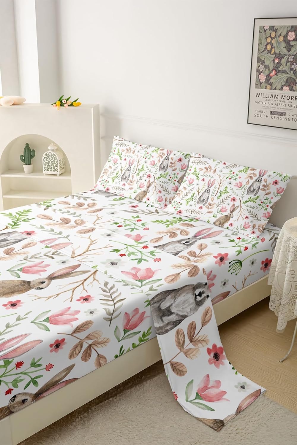 With its cute cartoon rabbit pattern, this set adds charm and personality to your child's room. The fitted sheet features a wrap-around elastic edge for a snug, secure fit on your mattress, while the flat sheet and pillowcases are designed to stay in place and look great for years.