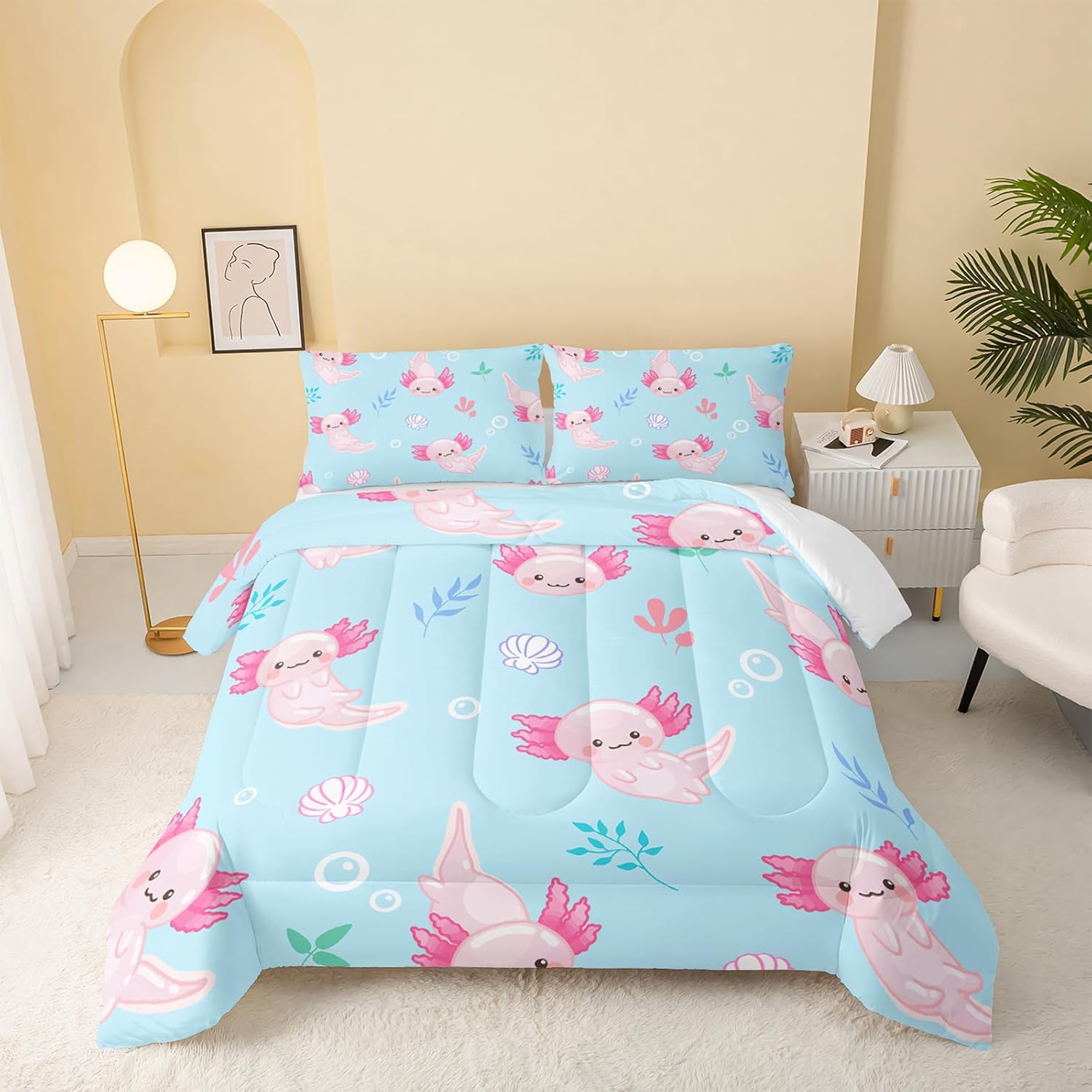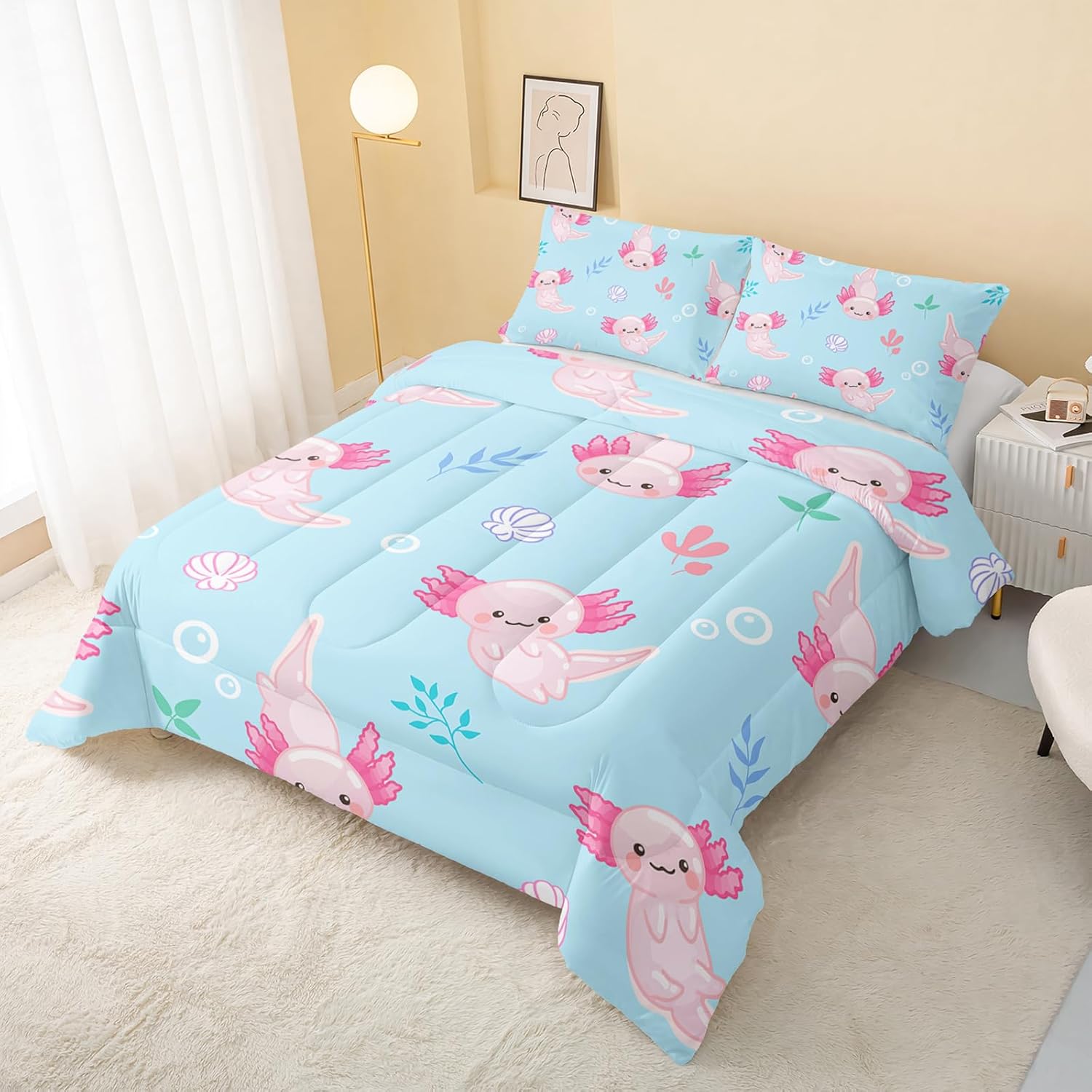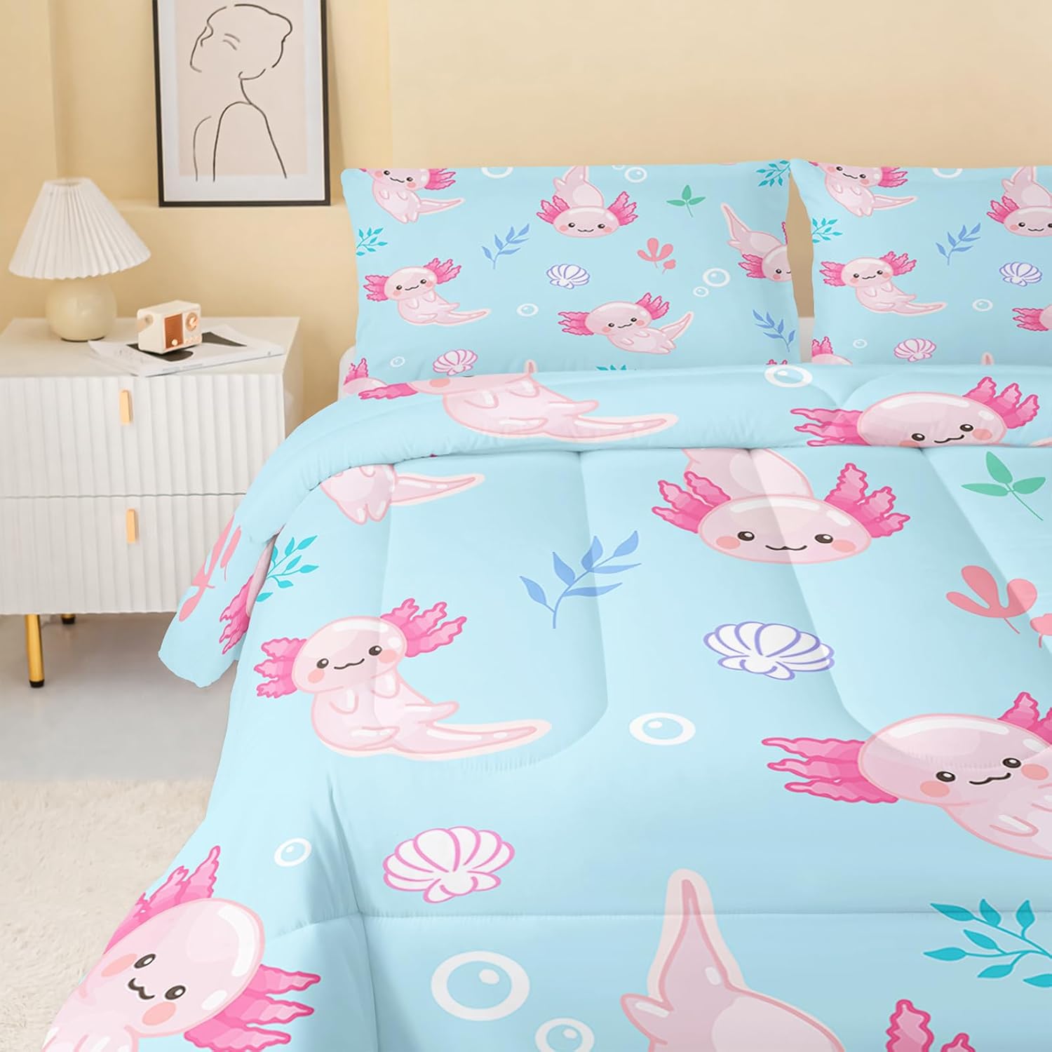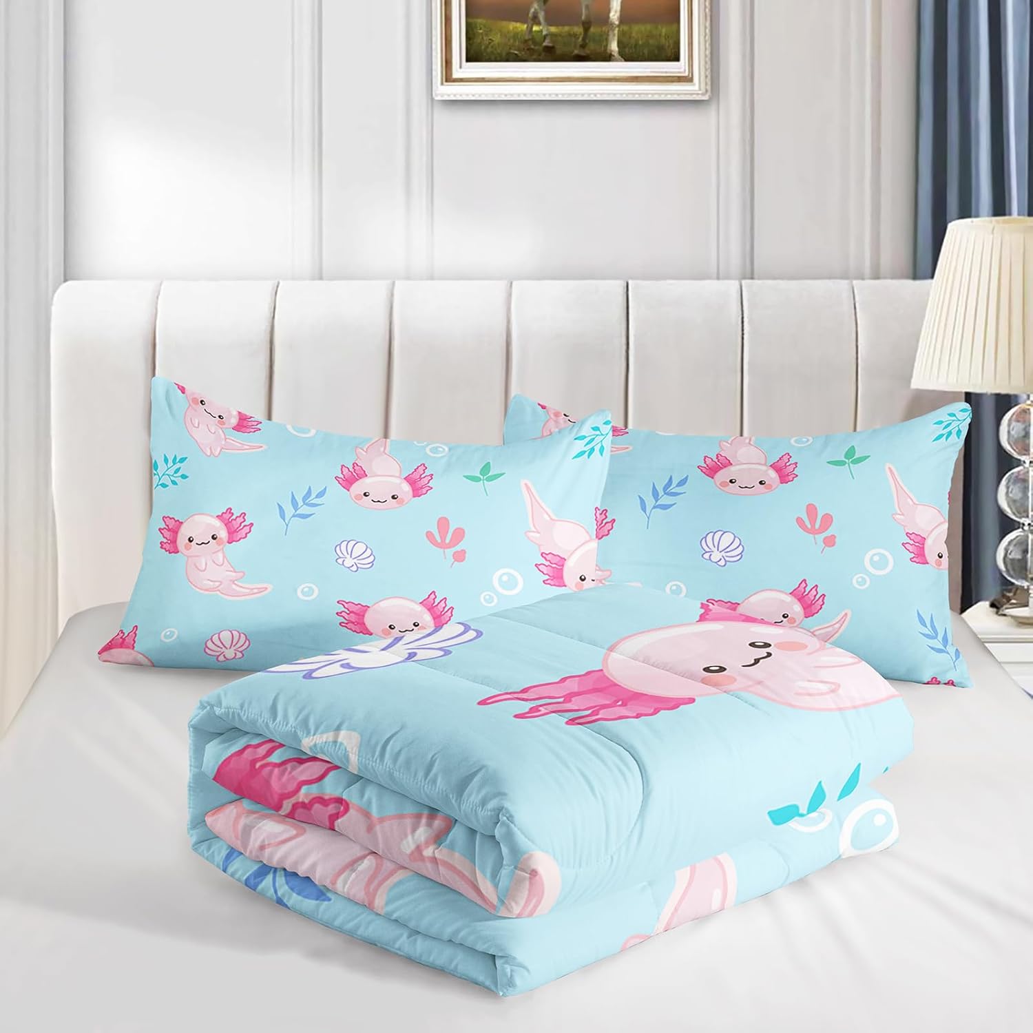 Kawaii Axolotl 3D Quilt Comforter Set for Kids