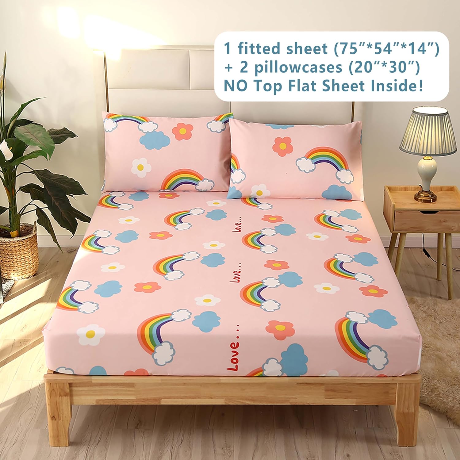 SDY 3PCS Rainbow Fitted Sheet Set for Kids