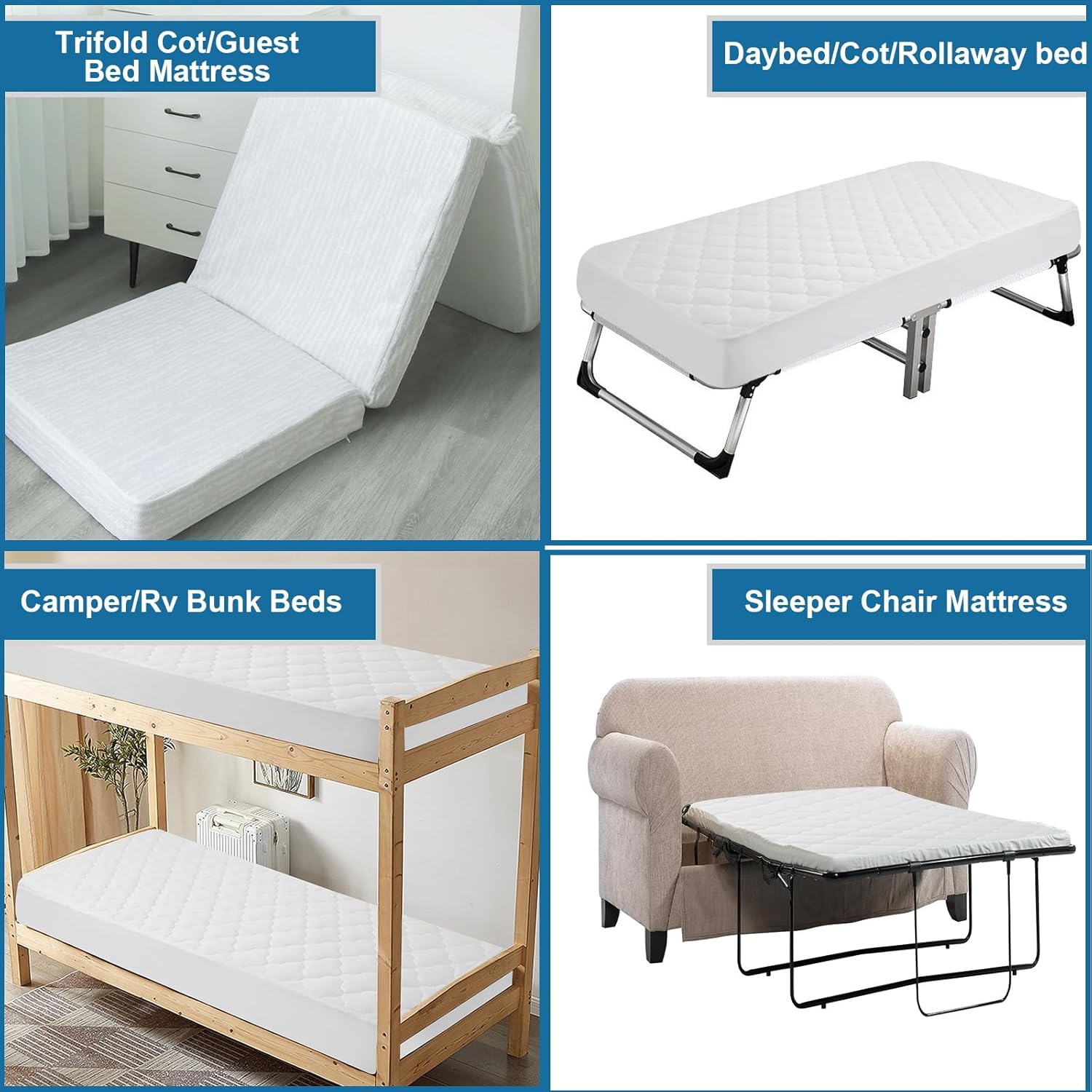 The deep pocket construction offers a snug fit, fitting 30" X 75" mattresses seamlessly. It's versatile enough to be used in camping setups, RVs, or even for temporary beds at home.