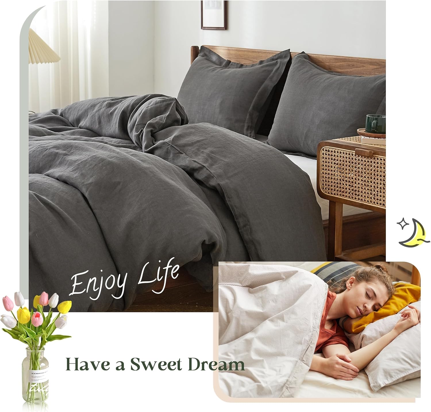 Transform your sleep space with the perfect blend of luxury and practicality. Our queen-sized duvet cover set is made from premium natural French flax, offering unmatched softness, breathability, and durability for a truly comfortable rest.