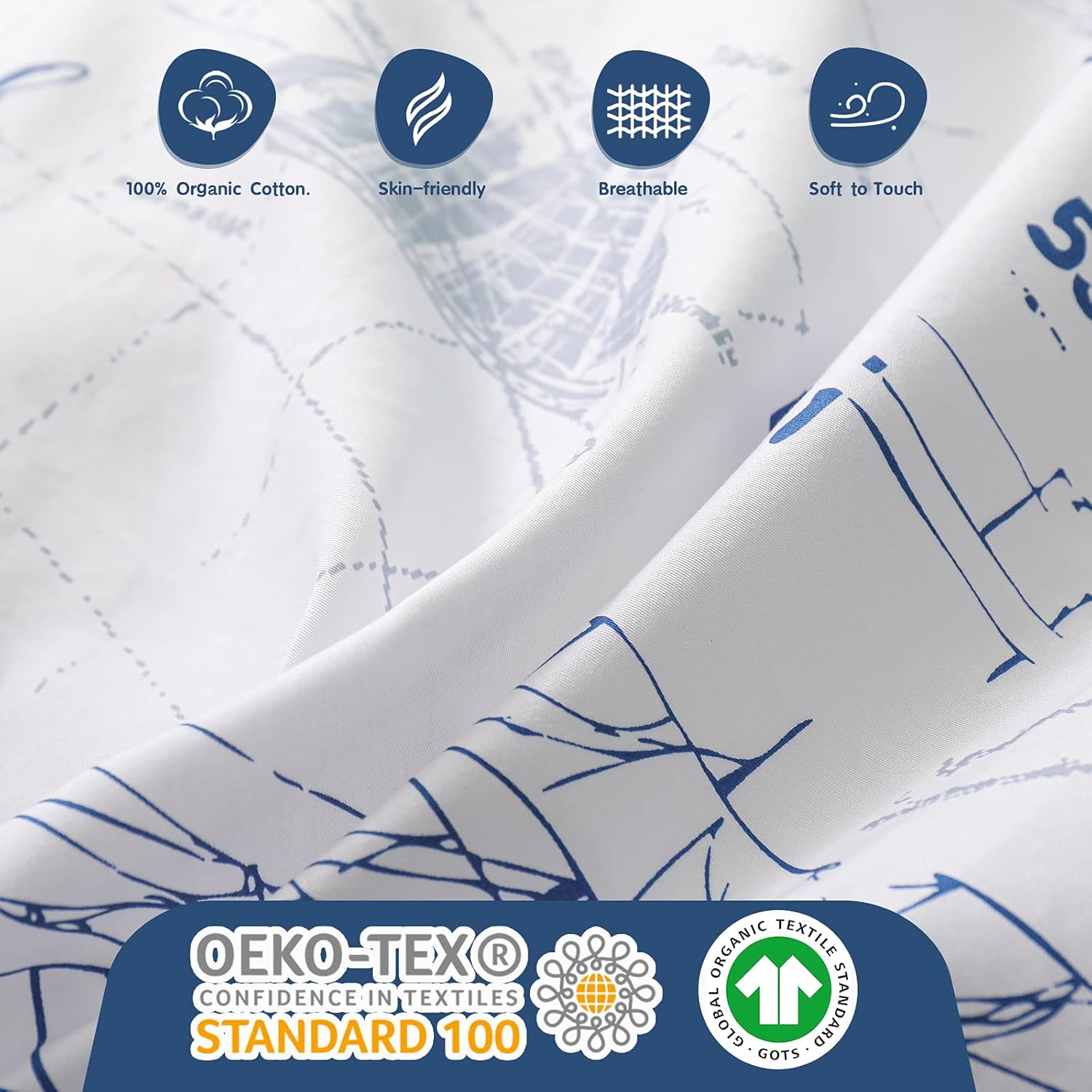 This 3-piece organic cotton duvet cover set is designed to blend comfort and charm for children and teens. Made from premium 100% organic cotton, it's gentle on sensitive skin, ultra-soft, and breathable, offering a restful sleep experience for every night. The included sailboat pattern adds a playful and adventurous vibe to any child's bedroom, turning it into a cozy retreat. The convenient zipper closure ensures easy access and a secure fit, while the four corner ties help keep your bedding in place. Whether you're looking to refresh your child's room or gift them an adorable set, this collection is both durable and delightfully designed. This twin size children duvet cover is versatile enough for use throughout the year, whether it's for warm summer nights or cooler winter days. The hypoallergenic properties make it safe for delicate skin and perfect for a restful, healthy sleep environment. Make your child's room a place of comfort and imagination with this elegant yet playful soft cartoon comforter cover set. Designed with quality and style in mind, it's a great choice for parents who want to provide both safety and aesthetic appeal. This organic cotton duvet cover set for kids features a sailboat pattern, zipper closure, and includes all necessary bedding pieces for a complete set. A perfect gift for birthdays, Christmas, and holidays.Soft & Stylish Kids Duvet Cover Set