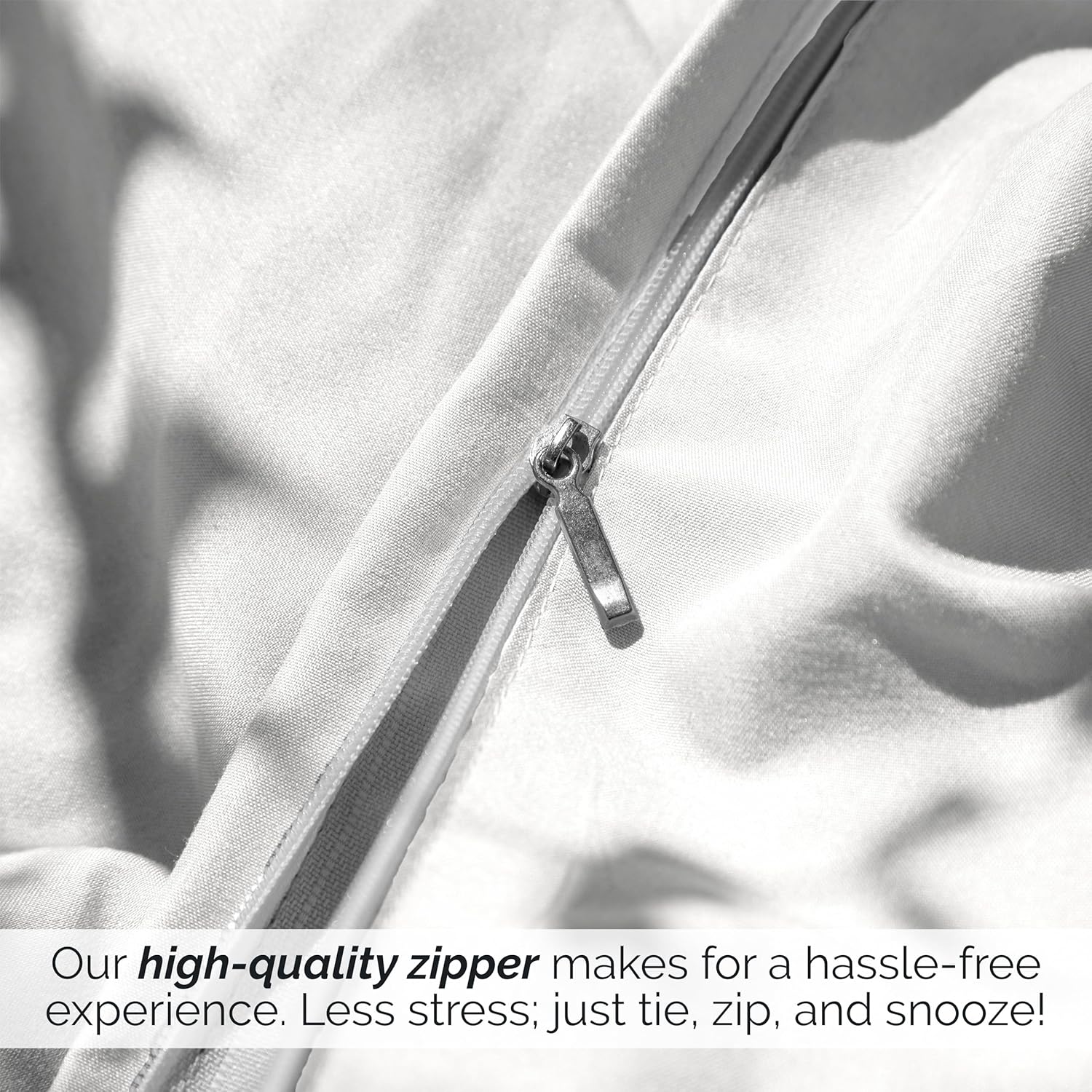 Featuring a secure zipper closure and four corner ties, this set ensures a snug fit and easy removal, making it ideal for all seasons. The neutral white color effortlessly blends with a variety of bedroom themes, whether youâre going for a modern minimalist style or a cozy rustic farmhouse vibe.