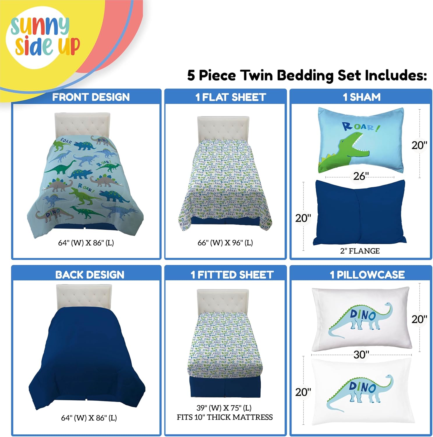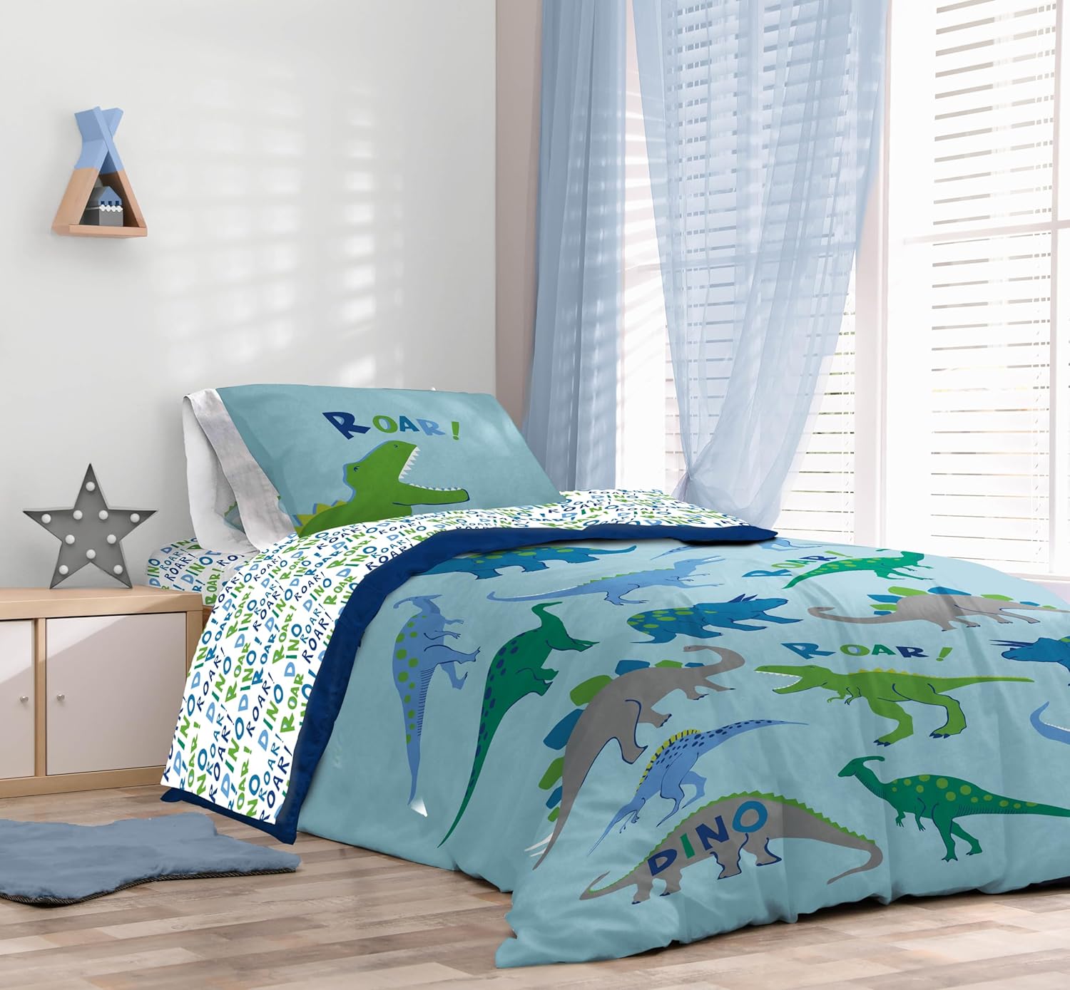 Designed to bring a sense of wonder and relaxation to bedtime, this Dino Roar Twin Comforter Set is a delightful addition to any child's room. The playful dinosaur theme creates an enchanting atmosphere, making sleep time feel like an exciting journey. With its vibrant colors and whimsical design, it transforms your child's sleeping area into a magical space they'll love.