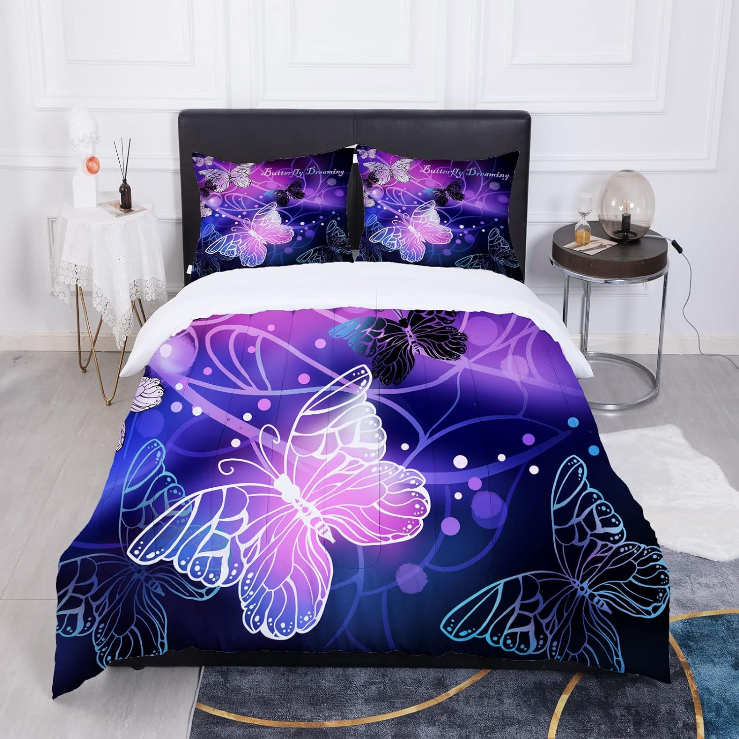 Keywords: 3D purple butterfly comforter set, soft and breathable bedding, twin comforter set for girls, fade resistant bedroom decor, home decor comforter set