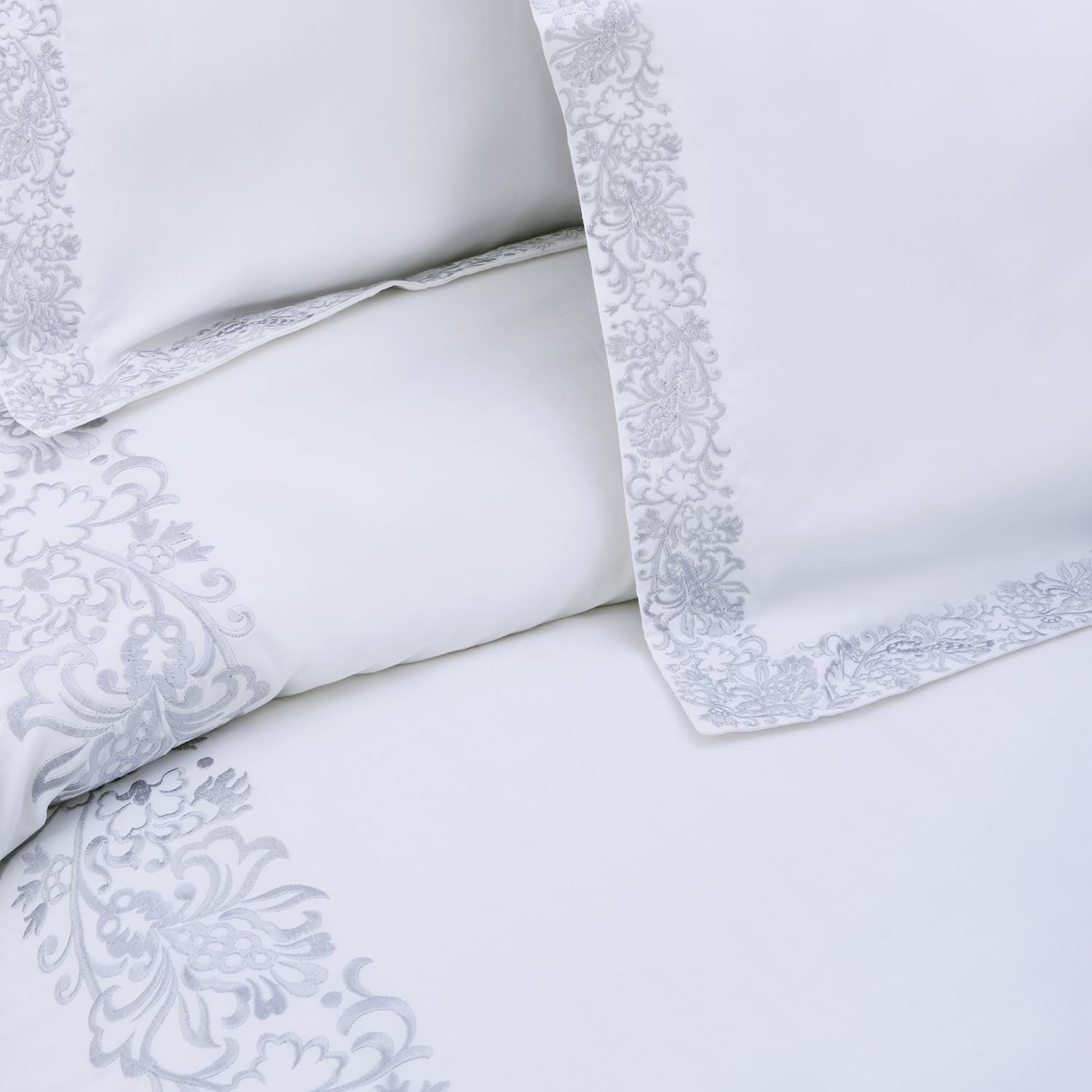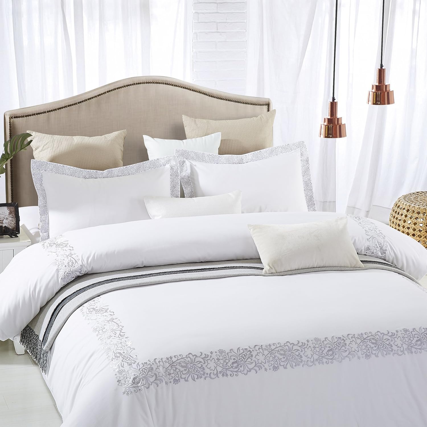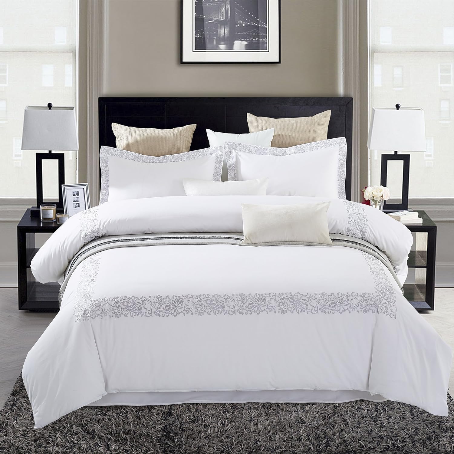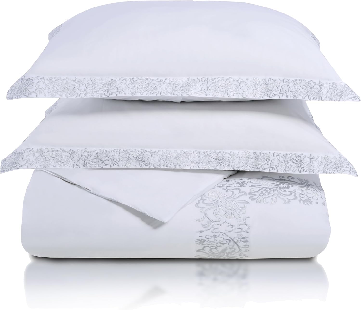 Elevate your bedroom with this beautifully crafted duvet cover set, designed to bring both comfort and style into your everyday routine. Made from 100% premium cotton, it offers a soft, smooth texture that feels luxurious against your skin, while remaining durable enough to withstand frequent use. The breathable fabric ensures a cool and comfortable sleep environment throughout the year, and the sateen finish adds a subtle sheen that enhances the overall aesthetic.