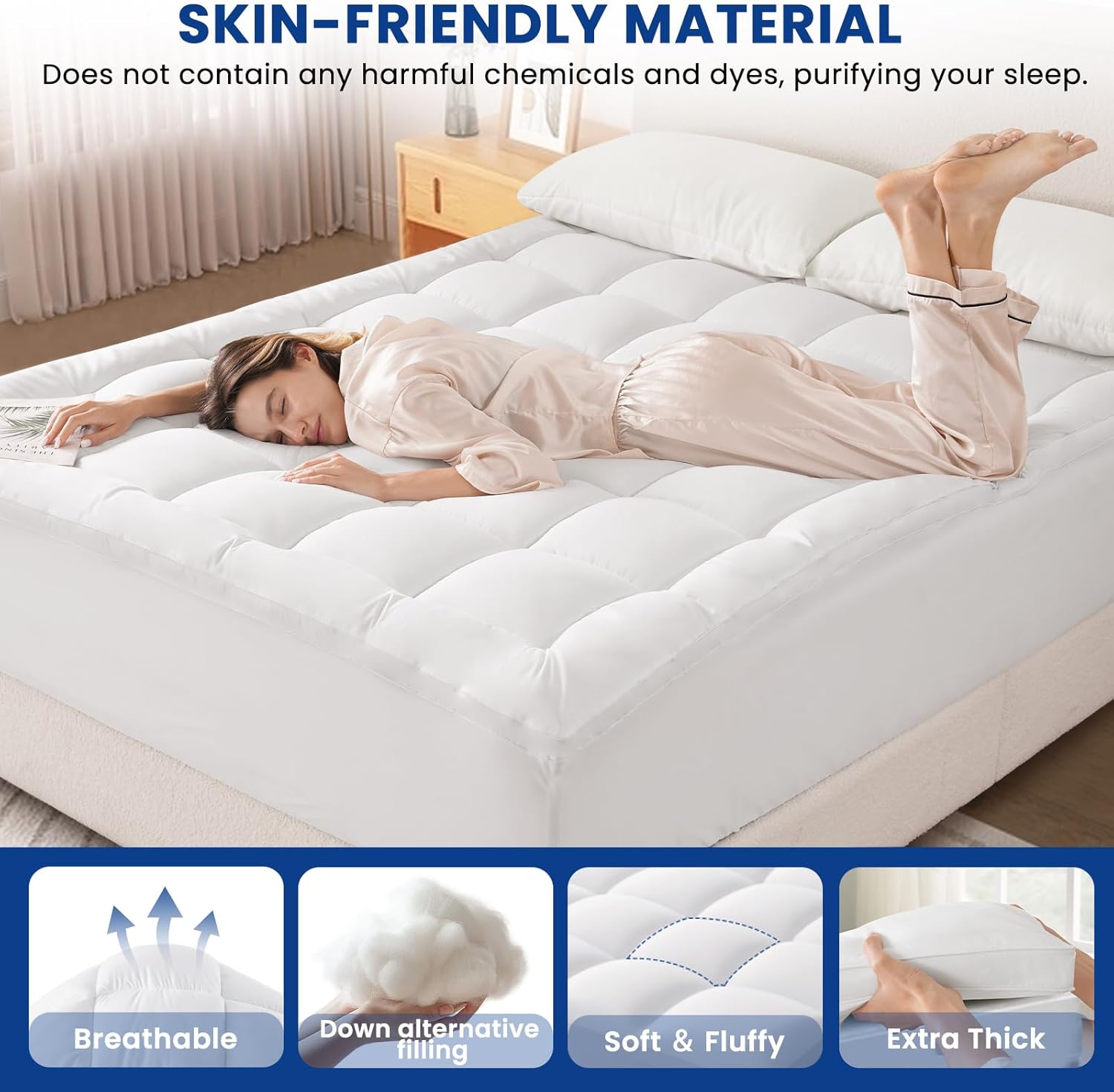 This twin mattress topper is not just a comfort upgradeâit's a long-term investment in your well-being. With its soft down alternative filling, it's gentle on your skin and kind to your body. The combination of quality construction and easy care makes it a top choice for those looking for back pain relief and a more restful sleep every night.