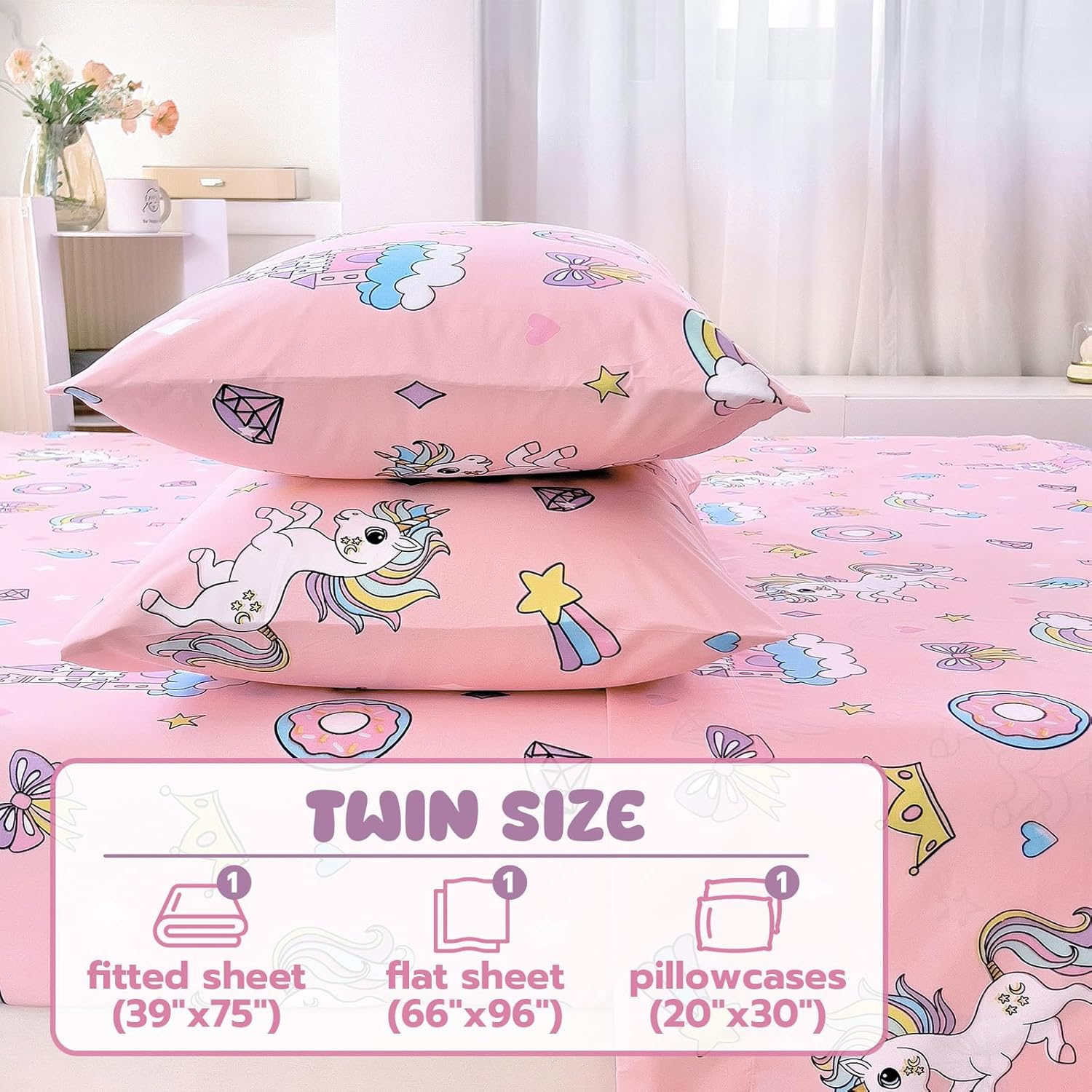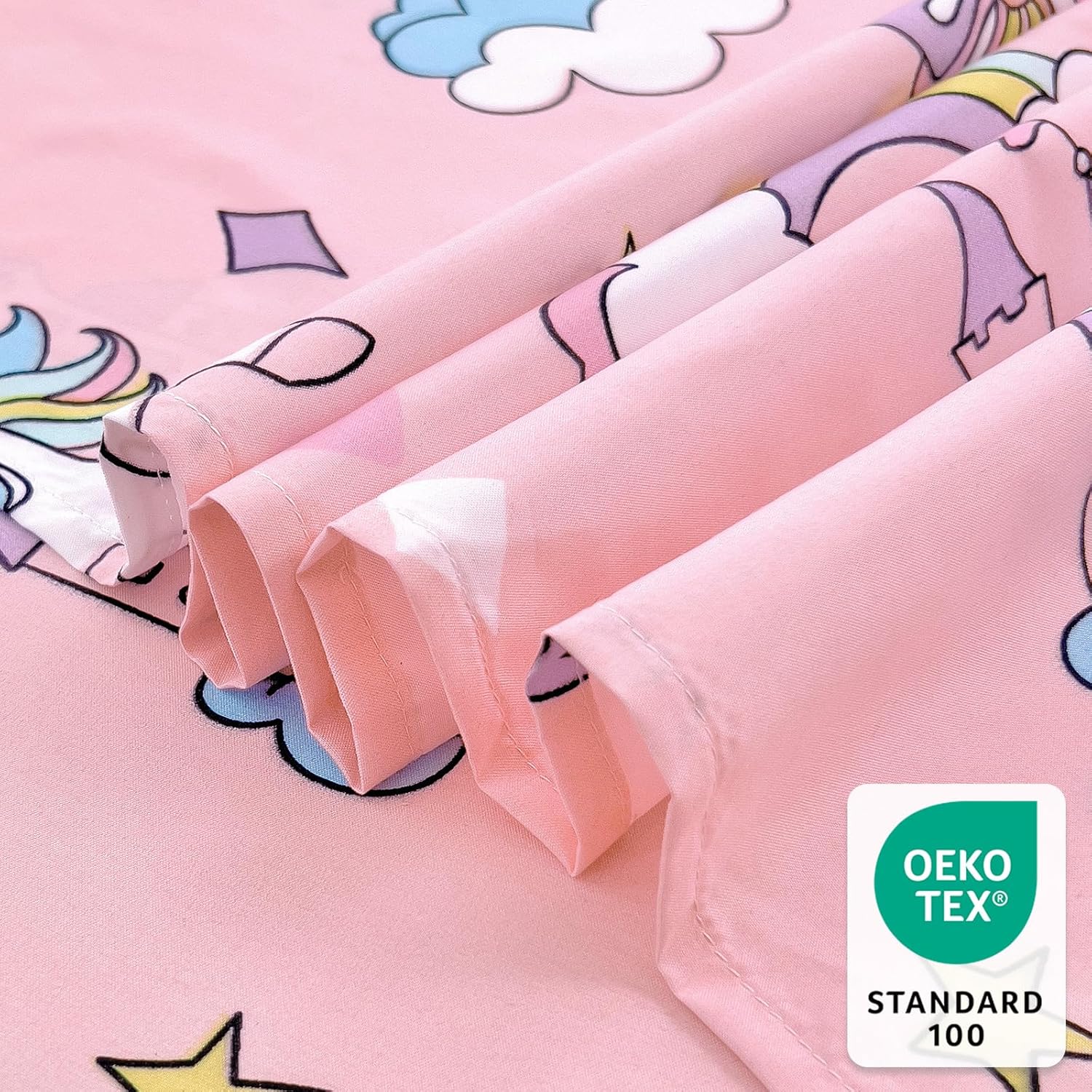 These twin sheets are the perfect blend of fun and function, helping your child sleep better in a room that feels like a magical wonderland. The colorful pink unicorn cartoon print design brings a whimsical charm to any bedroom, making bedtime more exciting and playful for kids of all ages.