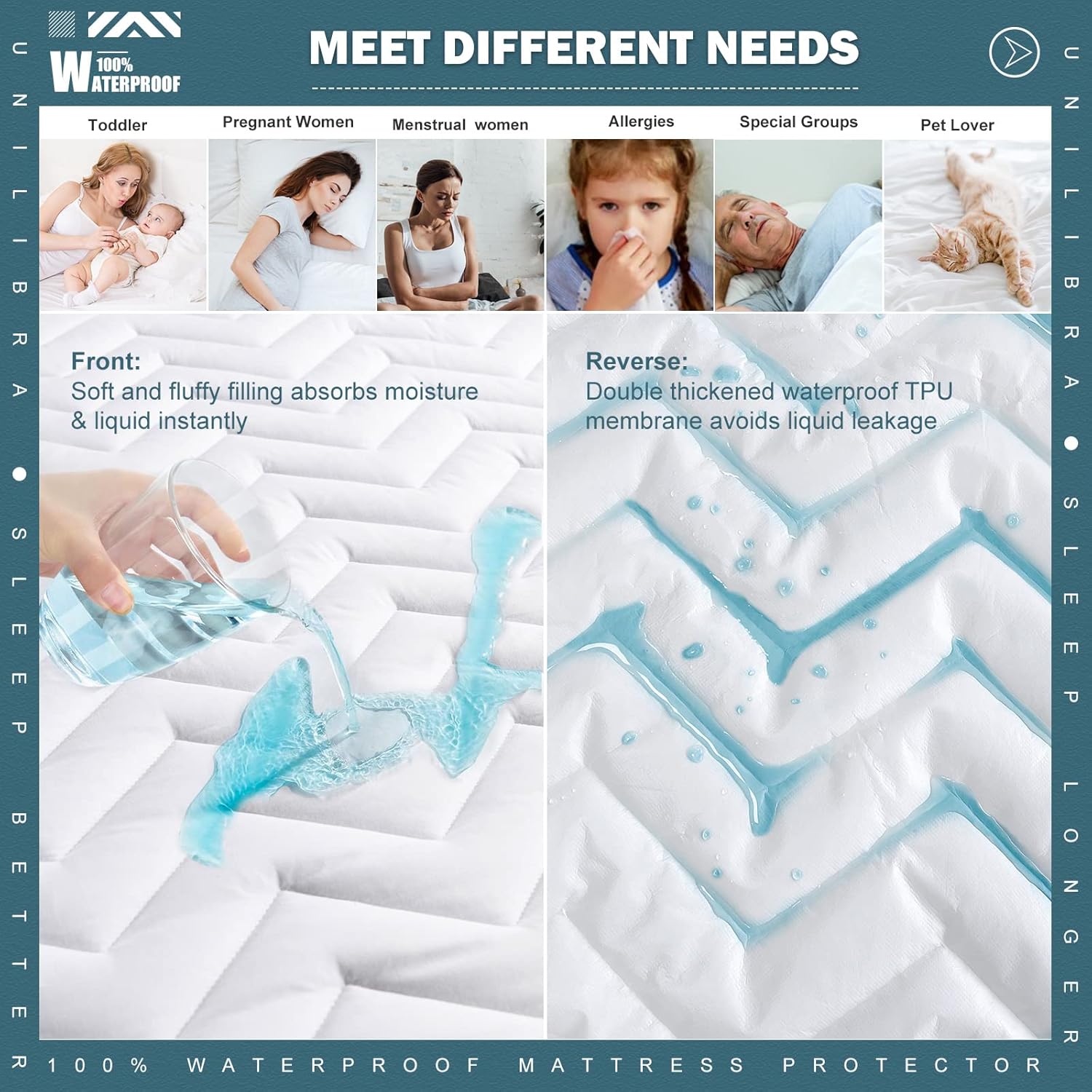 Whether you're a parent, a pet owner, or someone with sensitive skin, the UNILIBRA Full Size Waterproof Mattress Protector Quilted is built to meet your needs. It's designed to last, to feel great, and to keep your investment mattress safeâno matter what happens at night.