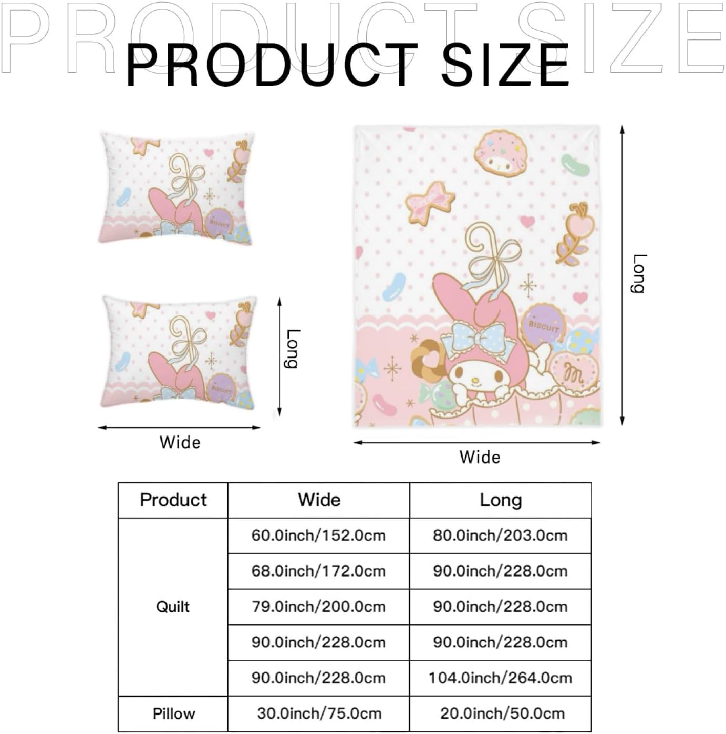This charming kids comforter set features the beloved My Bunny Melody cartoon pattern, adding a fun and playful touch to any child's bedroom. Designed to bring joy and comfort, it's the perfect choice for making bedtime a more delightful experience for little ones.