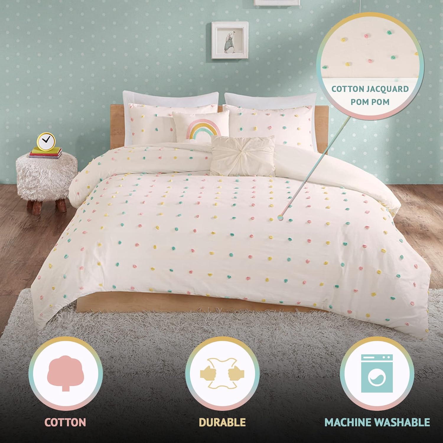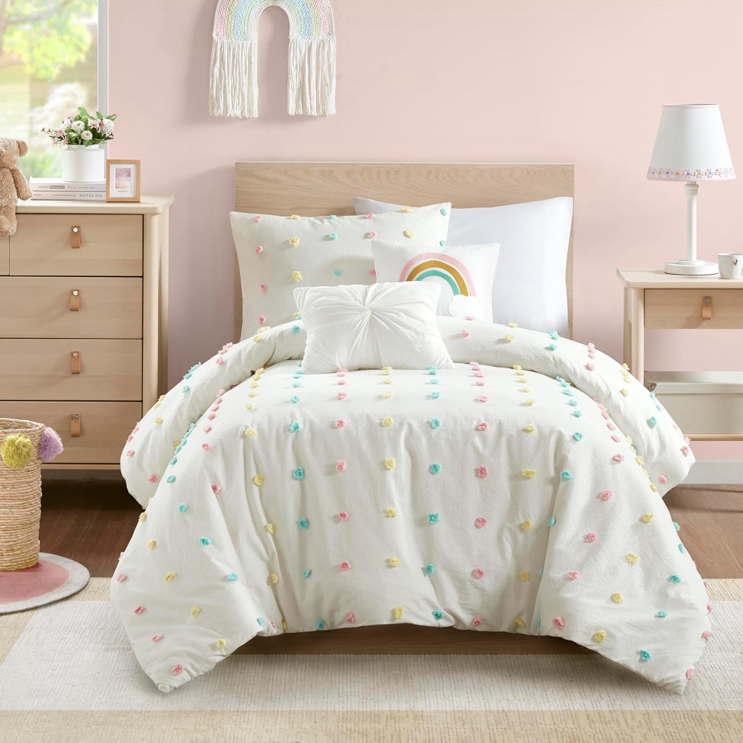 Transform your childâs bedroom into a magical, cozy retreat with the Urban Habitats Kids Callie Duvet Cover Set. Designed with a bold jacquard weave and vibrant pom poms, this stylish set brings a playful charm thatâs perfect for any shabby chic or modern decor. Itâs the ideal choice for creating a warm and inviting space that your little one will love to call home.