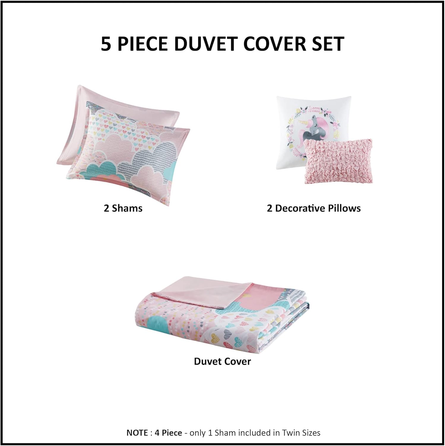 Transform your childâs sleeping space with this adorable 4-piece duvet set from Urban Habitat Kids. Featuring a charming cloud pink print, it adds a burst of color and comfort to any nursery or bedroom.