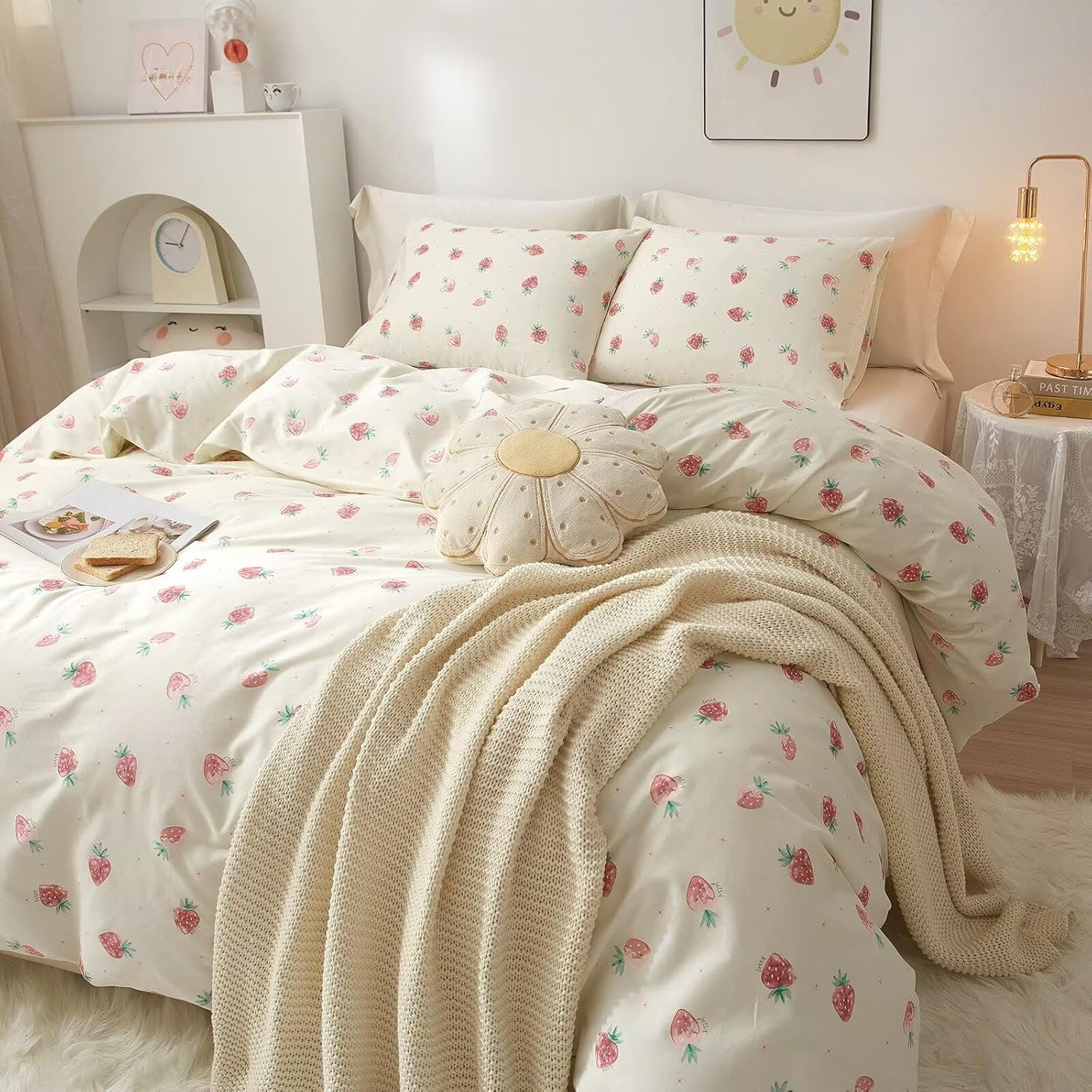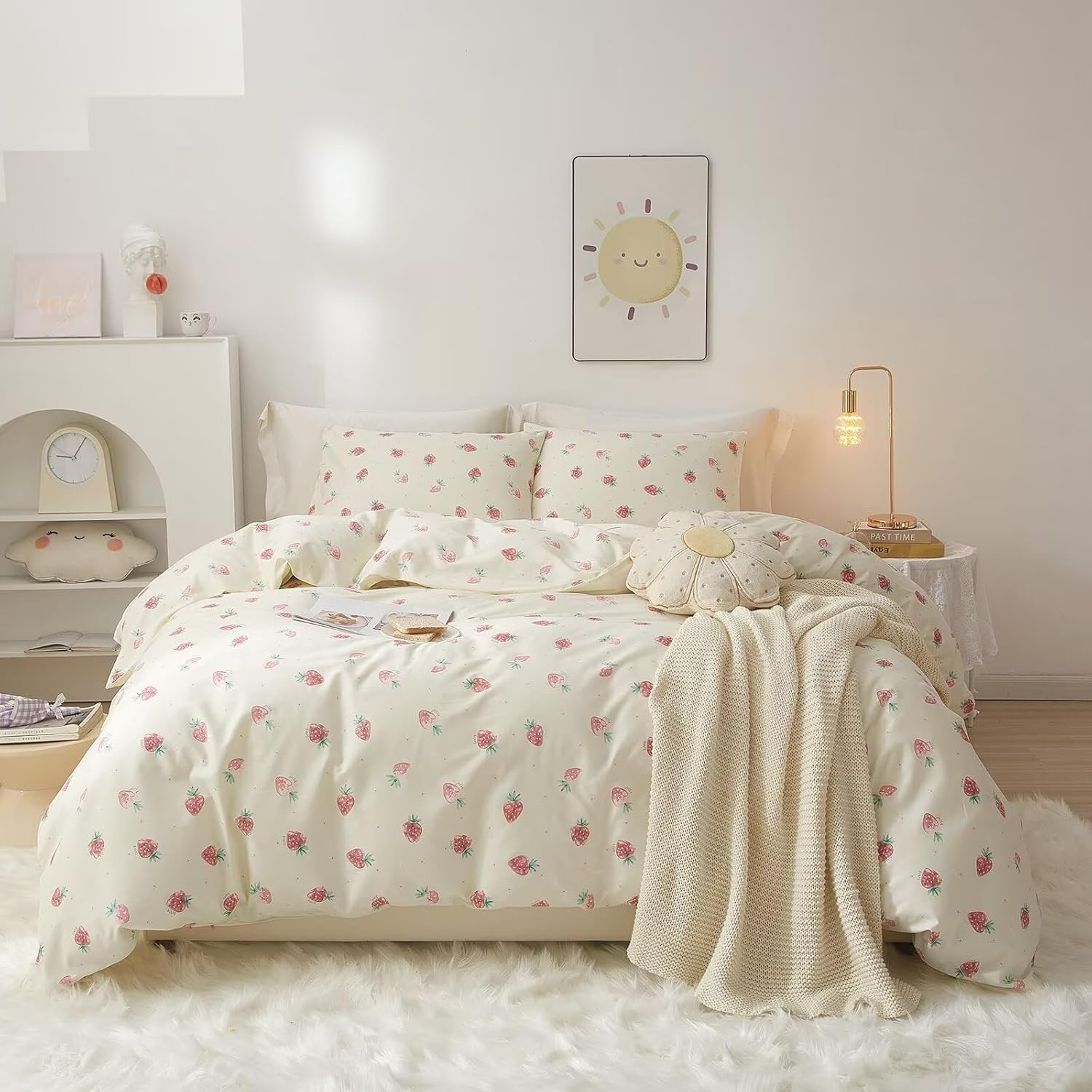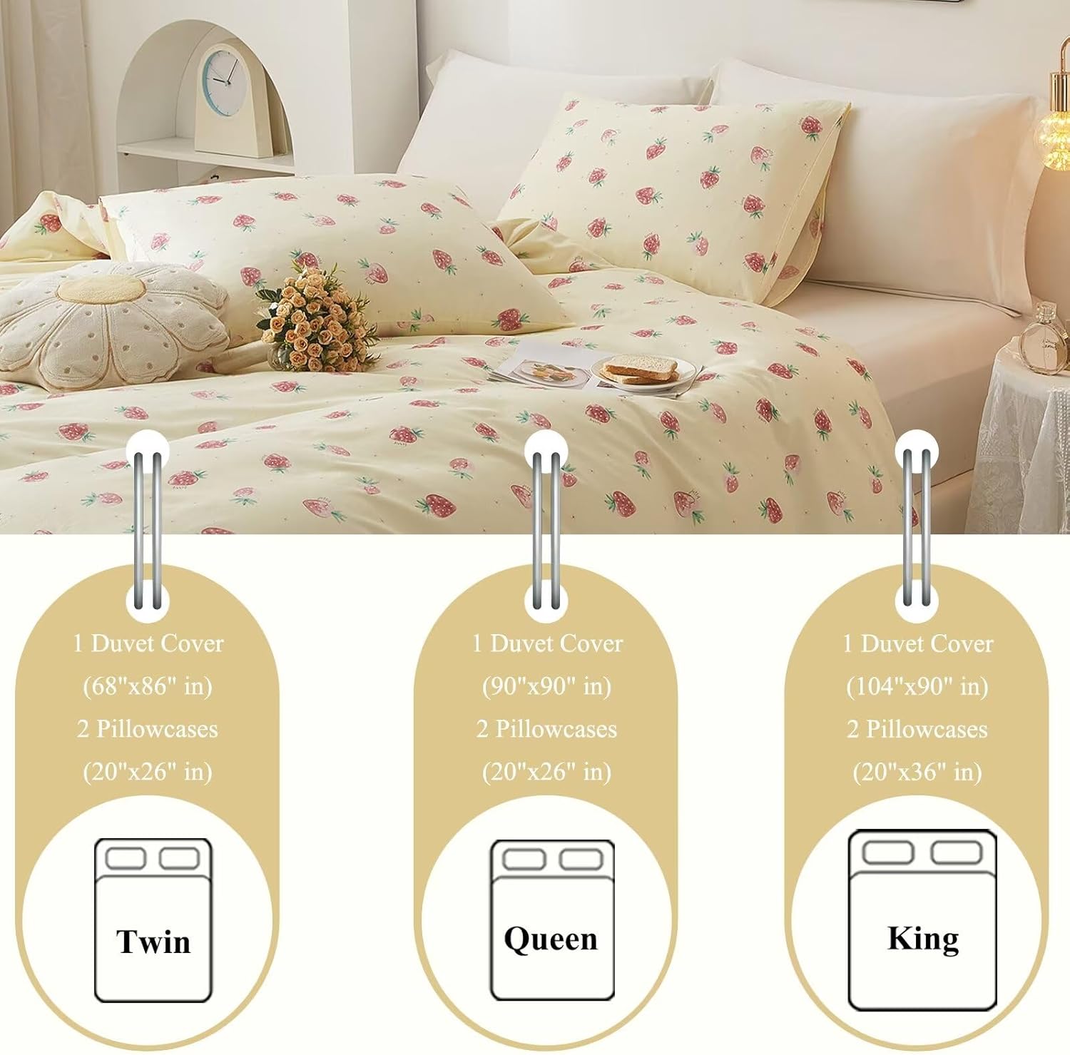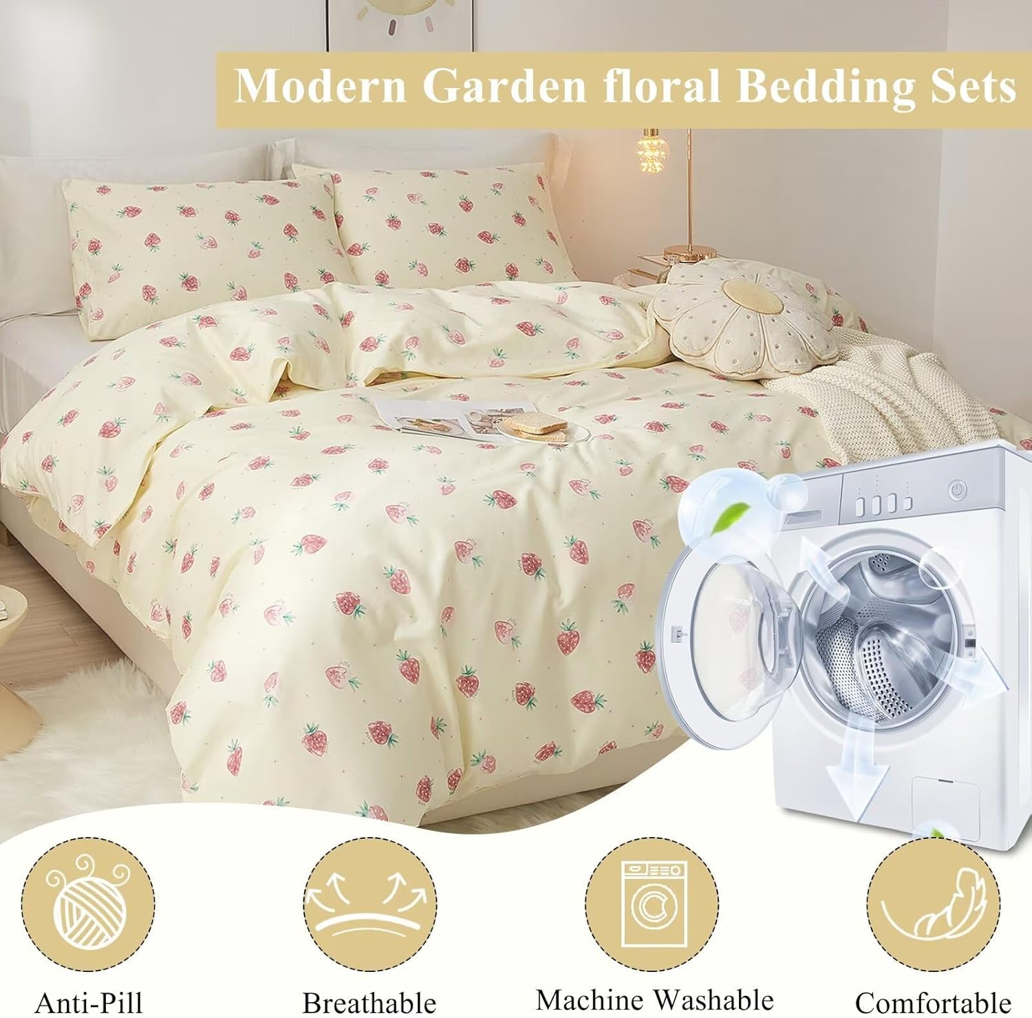 Soft, breathable, and stylishâthis 3-piece queen duvet cover set is designed for comfort and charm. Crafted from 100% cotton with a high 200 thread count, it offers a luxurious feel that's perfect for all seasons. The reversible design features a beautiful floral botanical pattern, allowing you to switch up your bedroom decor effortlessly.