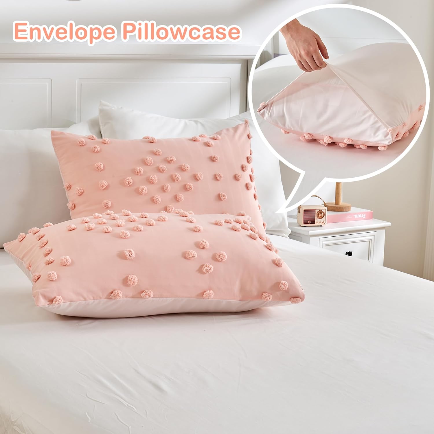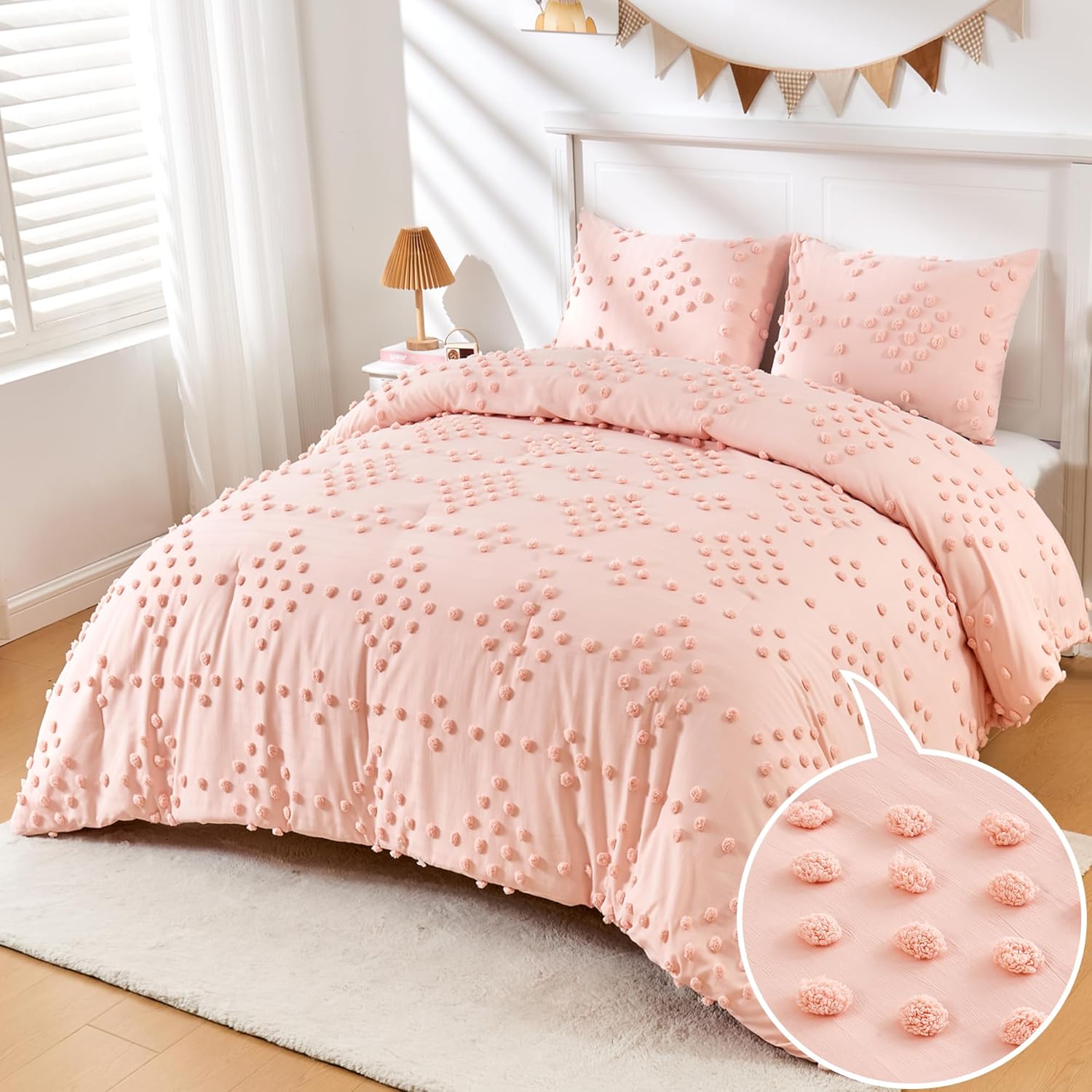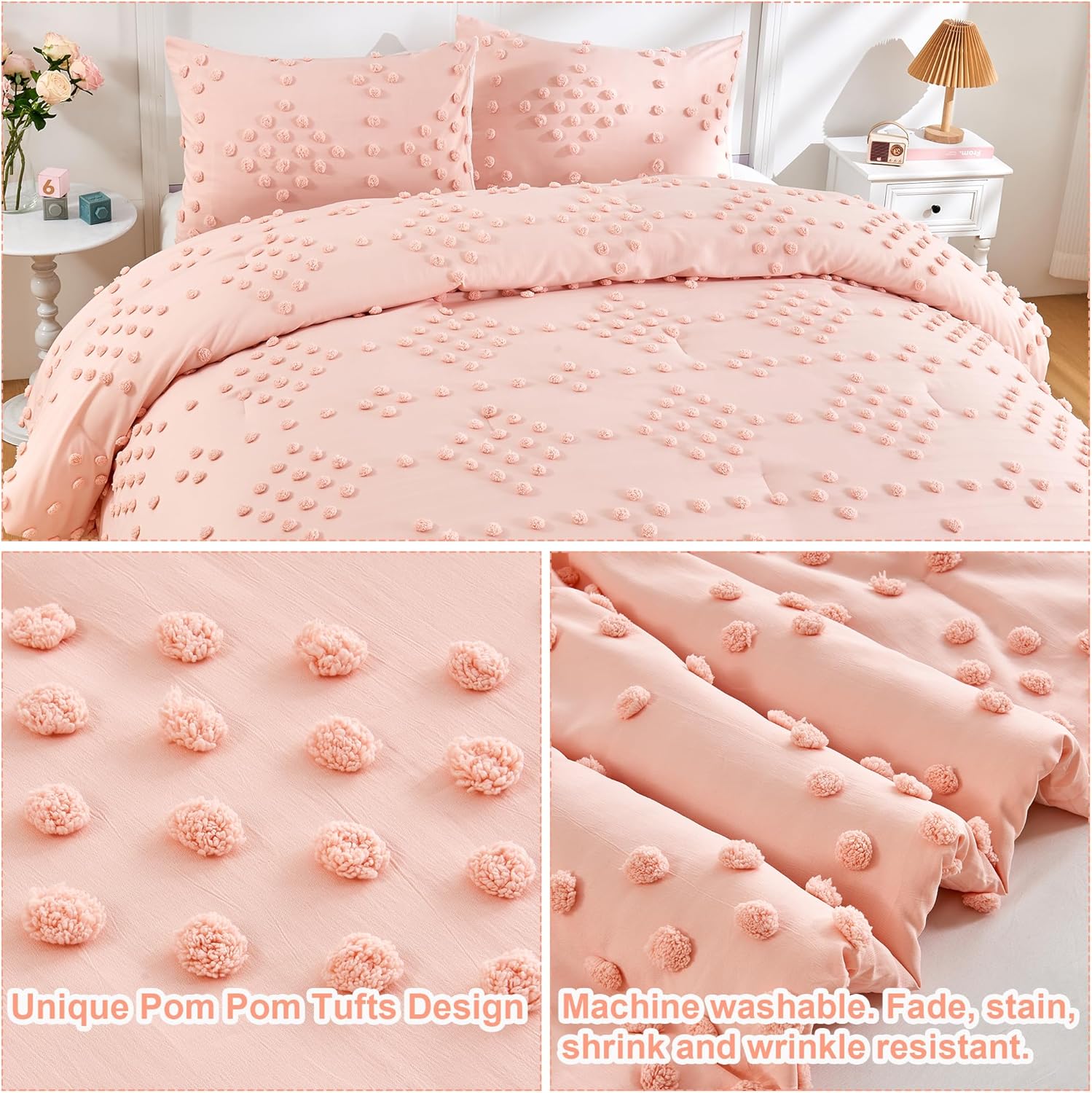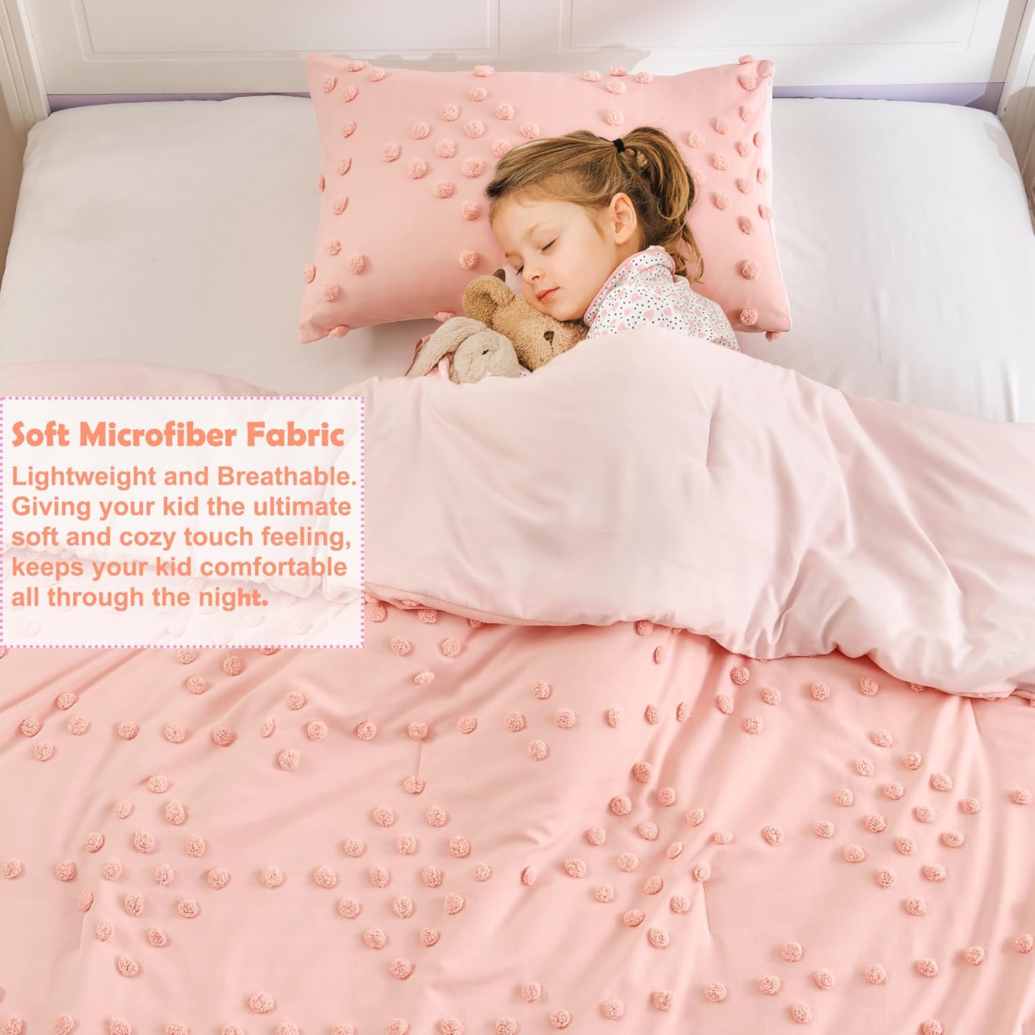 Add a touch of elegance and comfort to your child's room with this stunning pink boho comforter set. Made from 100% brushed microfiber, it offers a soft and breathable feel perfect for all seasons. The combination of cute pom pom tufts and polished diamond motifs creates a playful yet sophisticated look that's sure to capture your child's imagination.