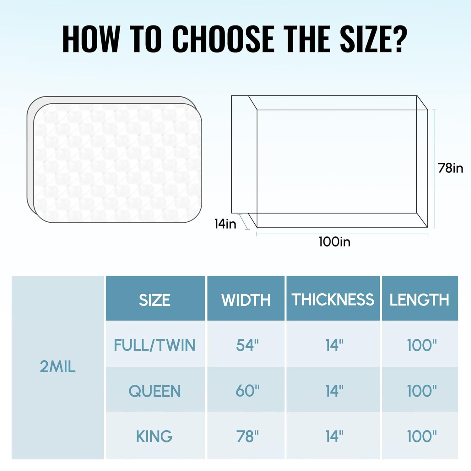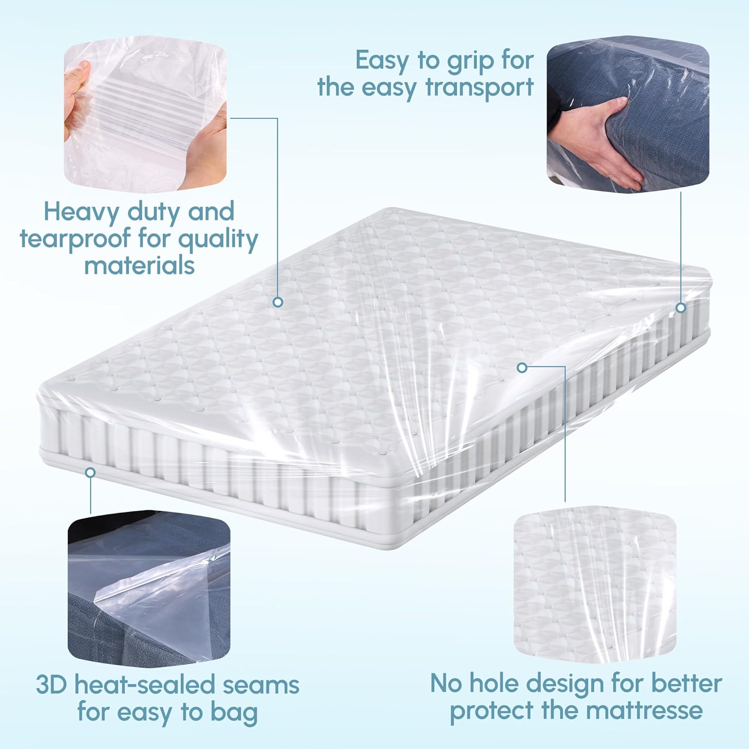 Ideal for both residential and commercial use, these queen and king-sized plastic mattress bags are more than just mattress protectorsâthey work as versatile covers for furniture, floor protection during painting, or dust-resistant covers for other household items. Slide them onto your mattress and secure with packing tape for airtight, easy-to-use storage solutions that ensure maximum protection.