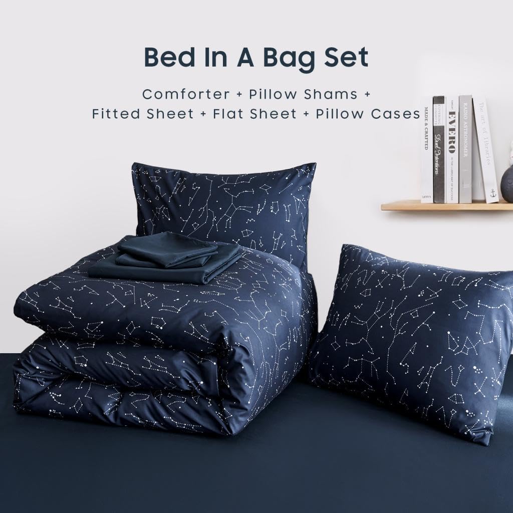 Featuring a 5-piece bed-in-a-bag collection, this set includes a Twin XL comforter, flat sheet, fitted sheet, and two pillowcases. Its lightweight and breathable construction ensures comfort all year round, while the premium brushed microfiber fabric delivers a soft, smooth feel that stays fresh and durable over time.