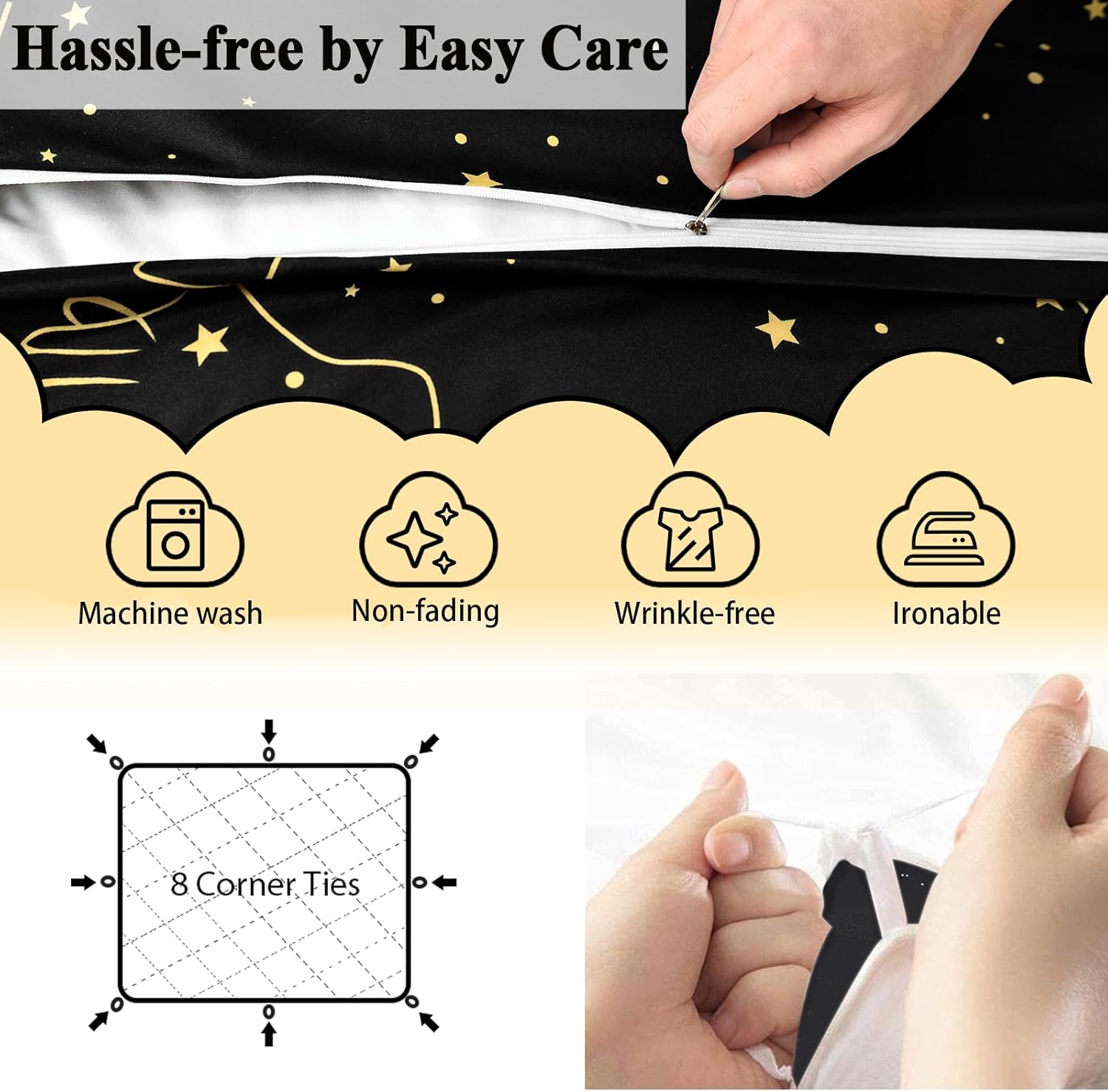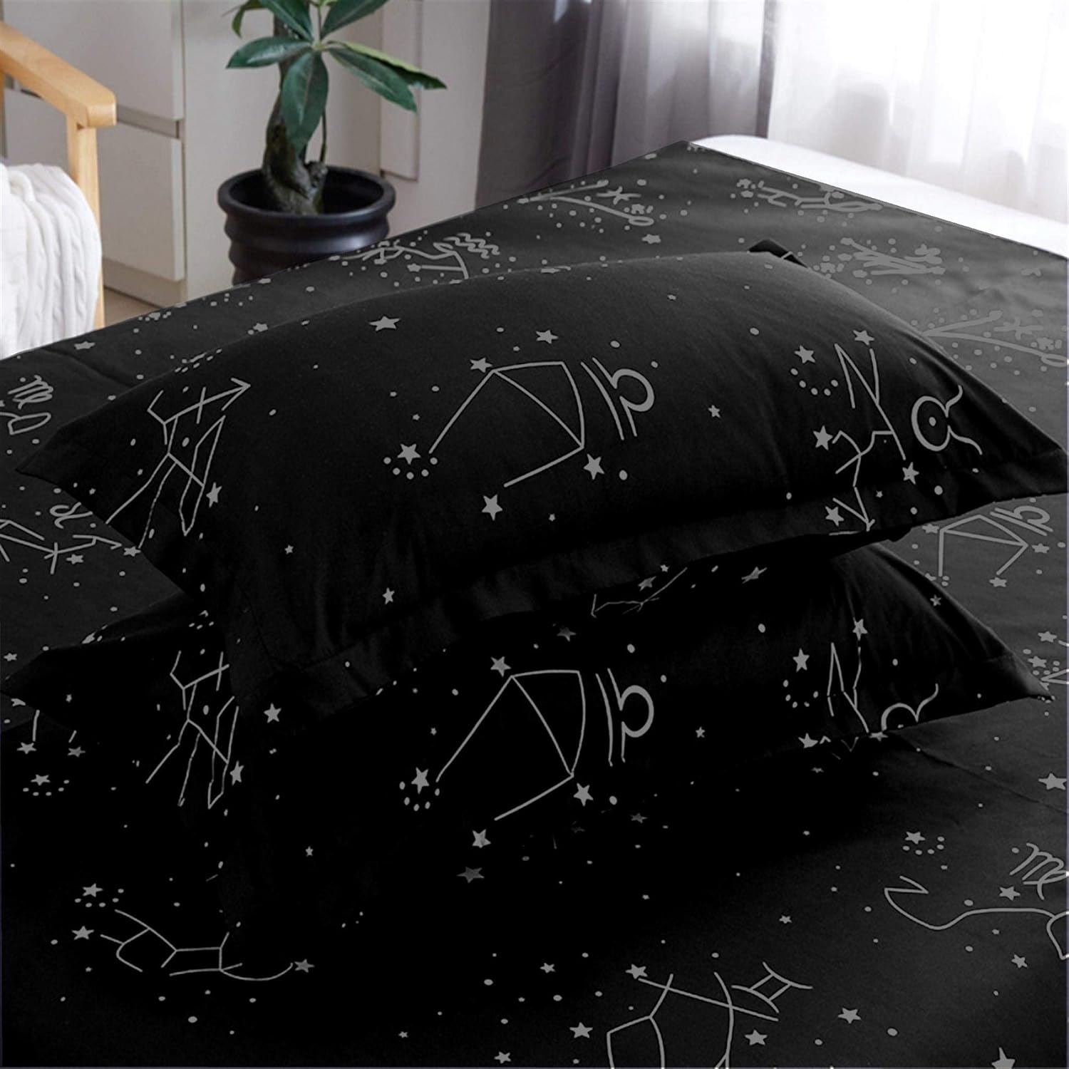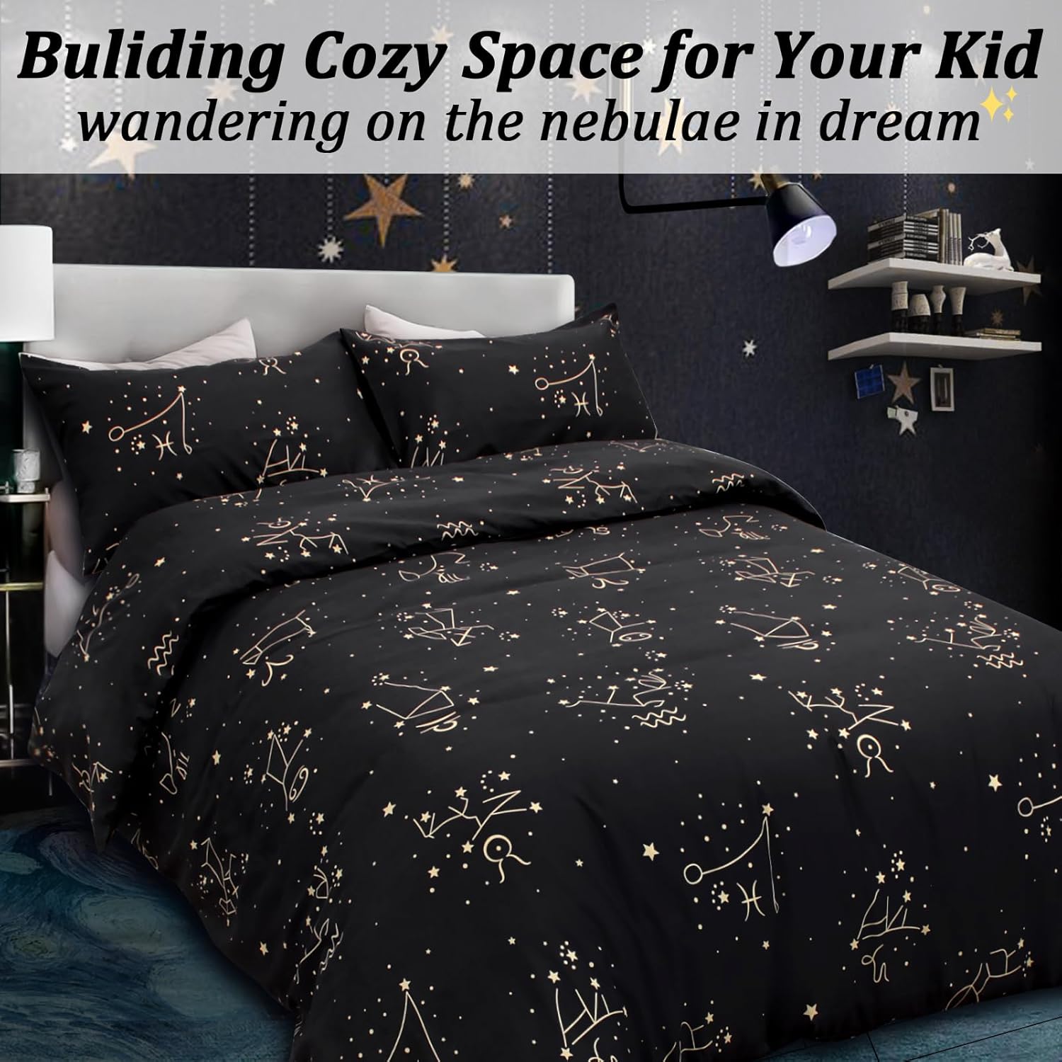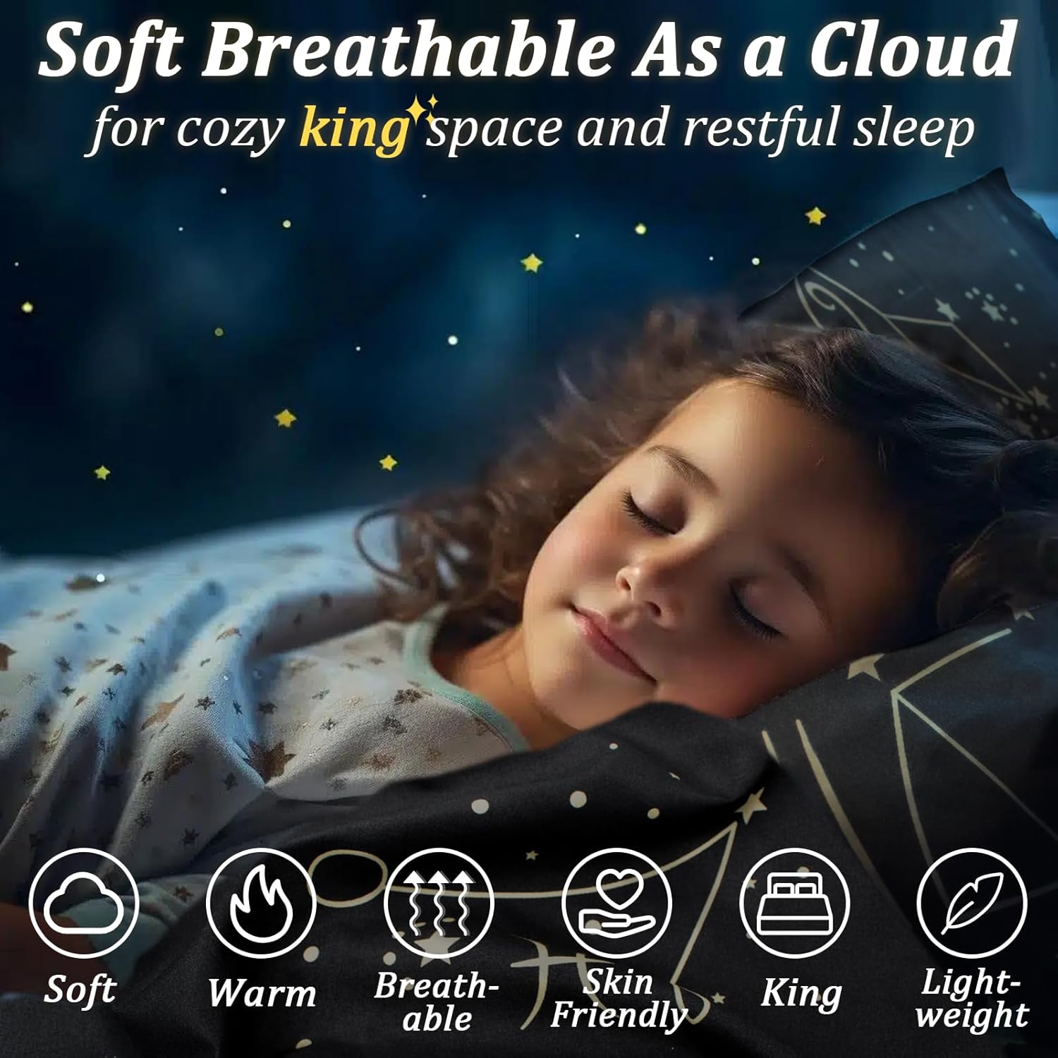 ZHH E-COMMERCE Duvet Cover Set King Kids features a soft, breathable polyester fabric and a starry constellation design to create a cozy, restful sleep environment. Includes 1 duvet cover and 2 pillowcases in a king size, perfect for kids' bedrooms. Machine washable, durable, and made with premium microfiber.