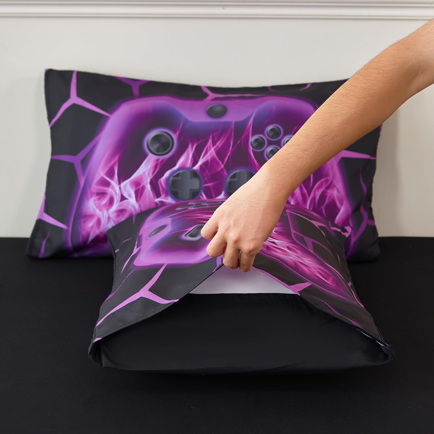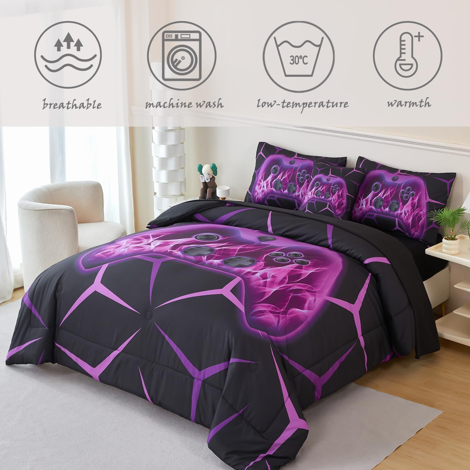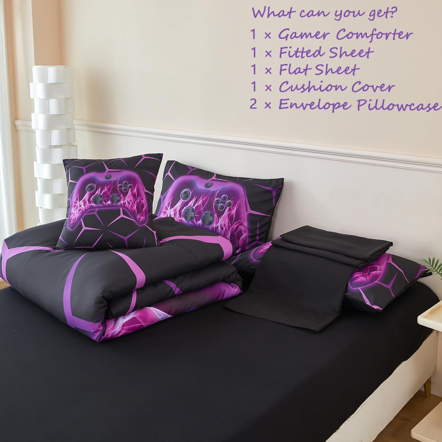 Transform your childâs bedroom into a gaming haven with the ZRNBAST 3D purple fire gamepad bed in a bag set. From the comforter to the cushion cover, every piece is designed with style and functionality in mind. It's the perfect way to combine comfort, durability, and a fun, personalized touch for gamers of all ages.