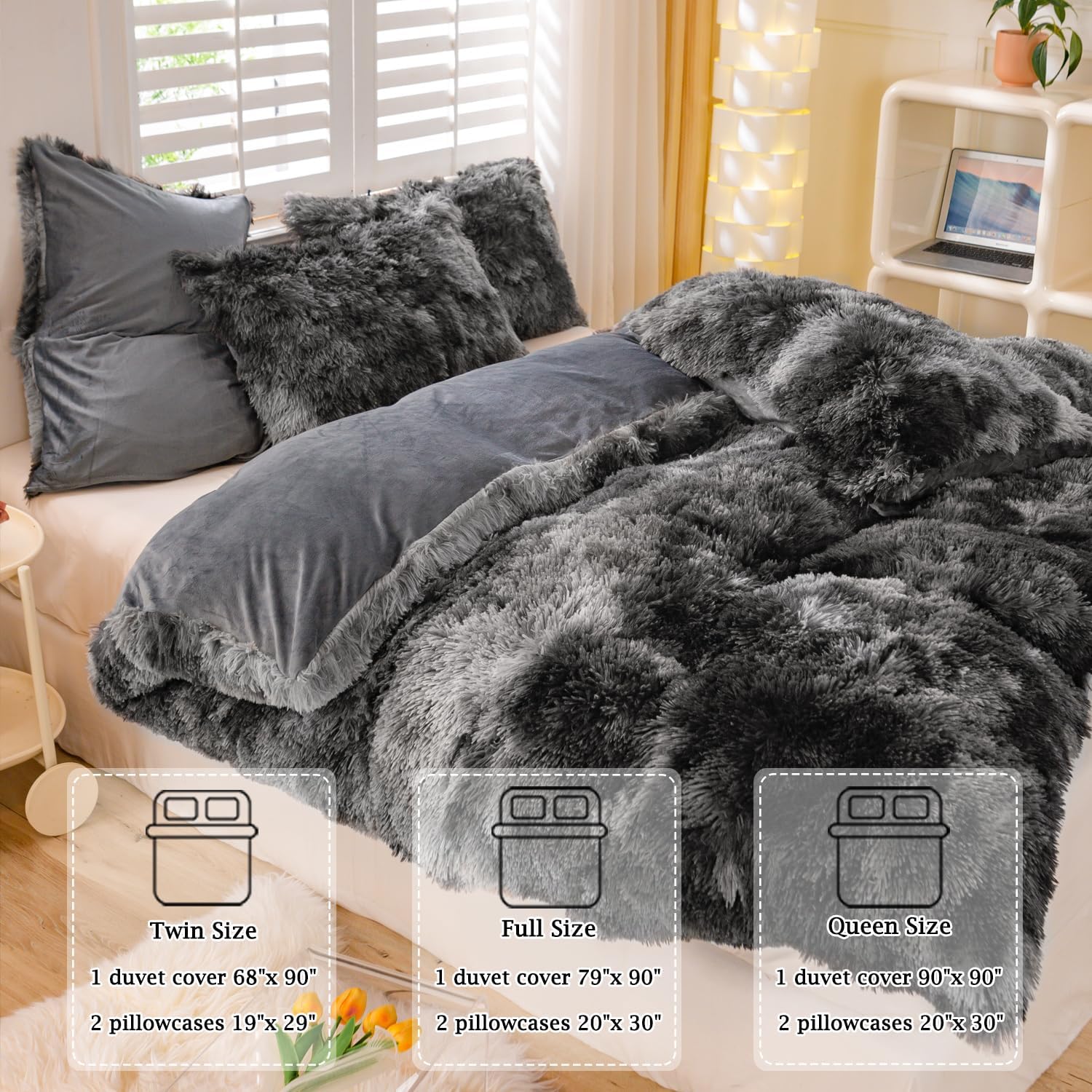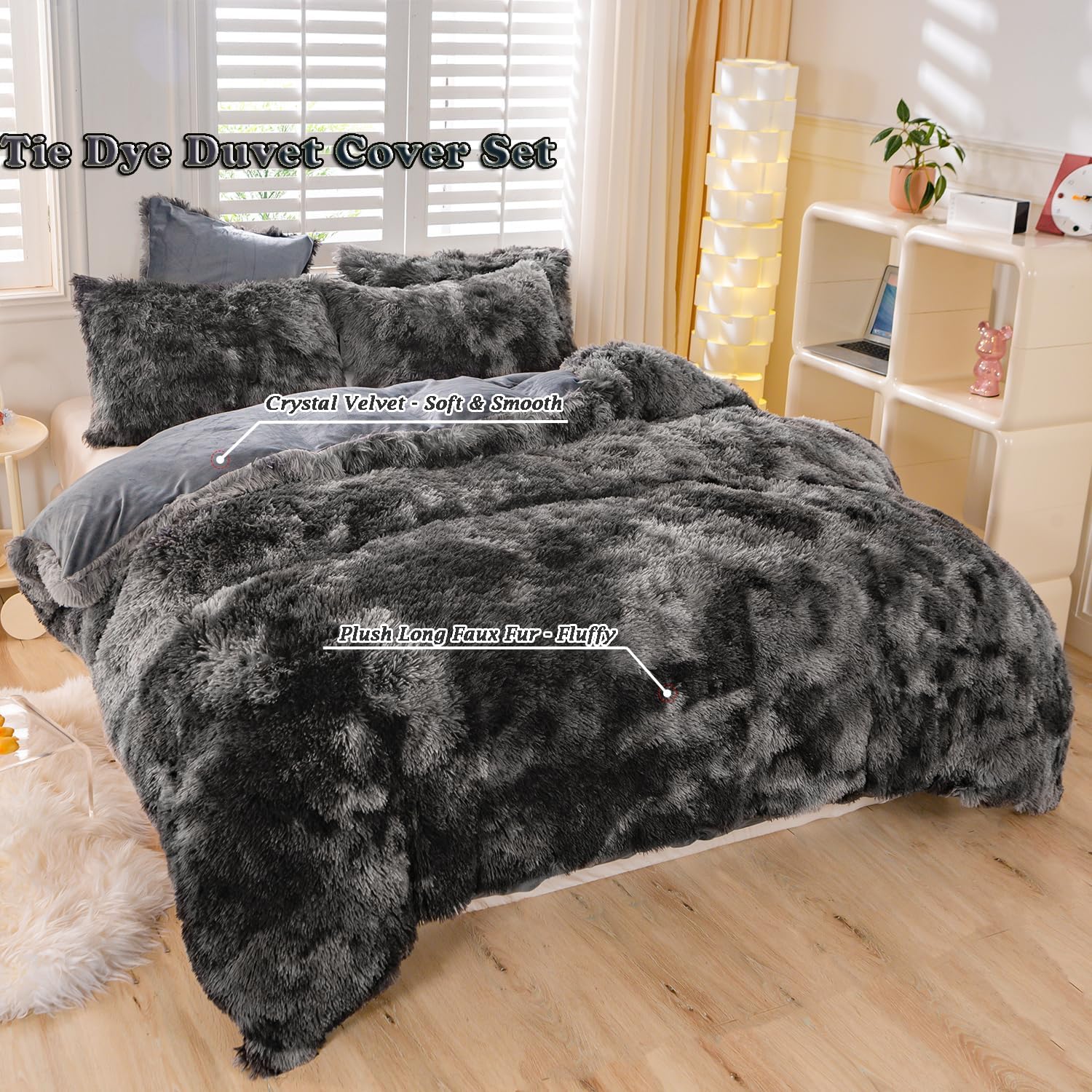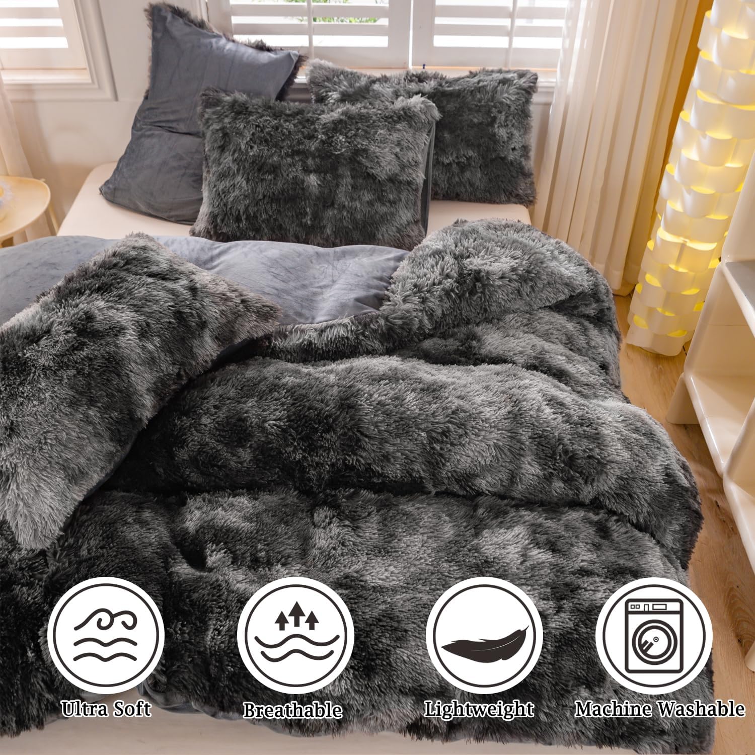 Transform your bedroom into a cozy retreat with the ZRNBAST Plush Shaggy Duvet Cover Set. Designed in twin size and in a stylish gray with a tie dye ombre pattern, it adds a touch of modern aesthetic to your space. The combination of plush front fabric and soft velvet on the back ensures both a comfortable and luxurious sleep experience. This duvet cover is perfect for kids and adults alike. Its high-quality construction makes it durable and long-lasting, while the hidden metal zipper and corner ties offer convenience in removing and securing your duvet insert. Whether it's winter or summer, this versatile set can be used as a thick duvet cover or a decorative blanket, making it ideal for all seasons.ZRNBAST Plush Shaggy Duvet Cover Set - Twin Size Gray with Tie Dye Ombre Design