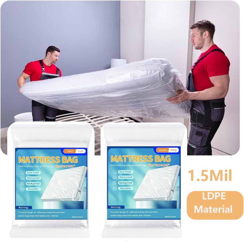 Keep your mattress and box spring safe during moves, storage, or disposal with Zangboerâs 2-pack mattress bags. These heavy-duty storage solutions are crafted from premium LDPE material, offering reliable protection against dust, moisture, and damage. Whether you're preparing for a home move or need to store your mattress for a period of time, these bags are designed to make the process easier and more secure.